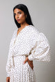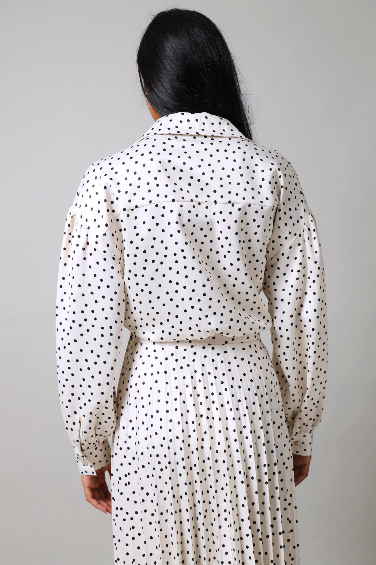 Long Sleeve Cropped Tie Front Detail Shirt - Cream/Black