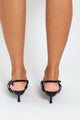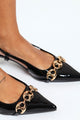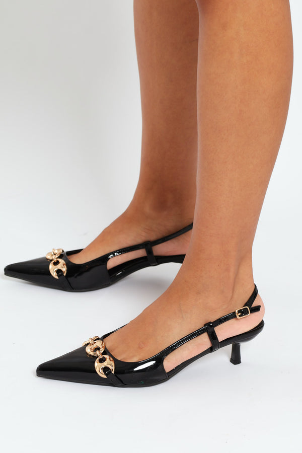 Indulge in sleek sophistication with our Low Shaped Slingback Court in classic black. Made with a chunky link design, these courts elevate any look with subtle edge. The low shape and slingback style add a touch of elegance, making them perfect for both day and evening wear.