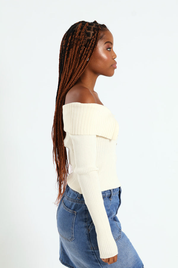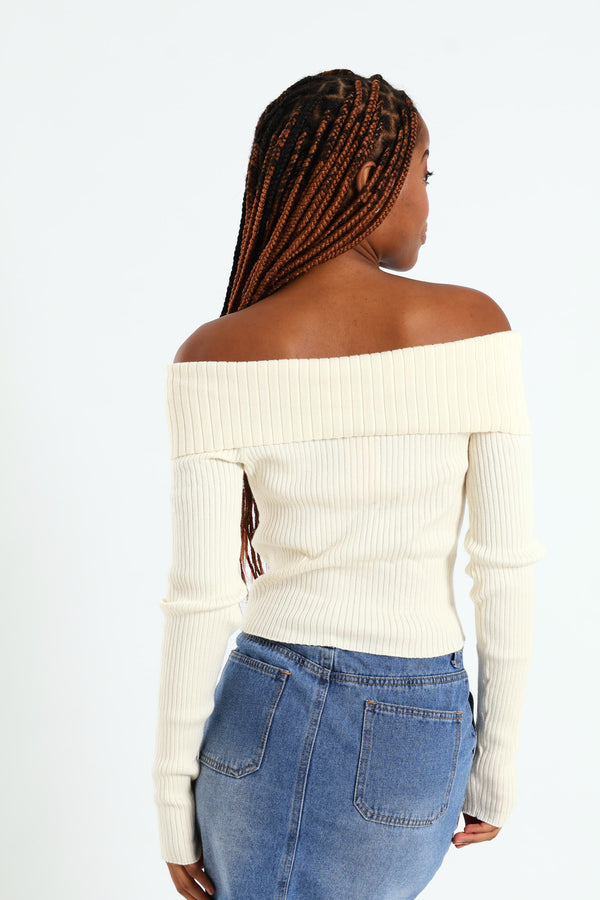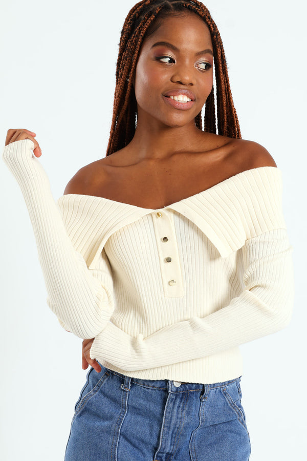 Off The Shoulder Button Front Top - Stone