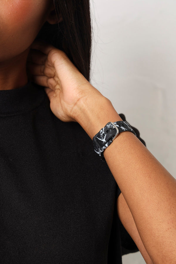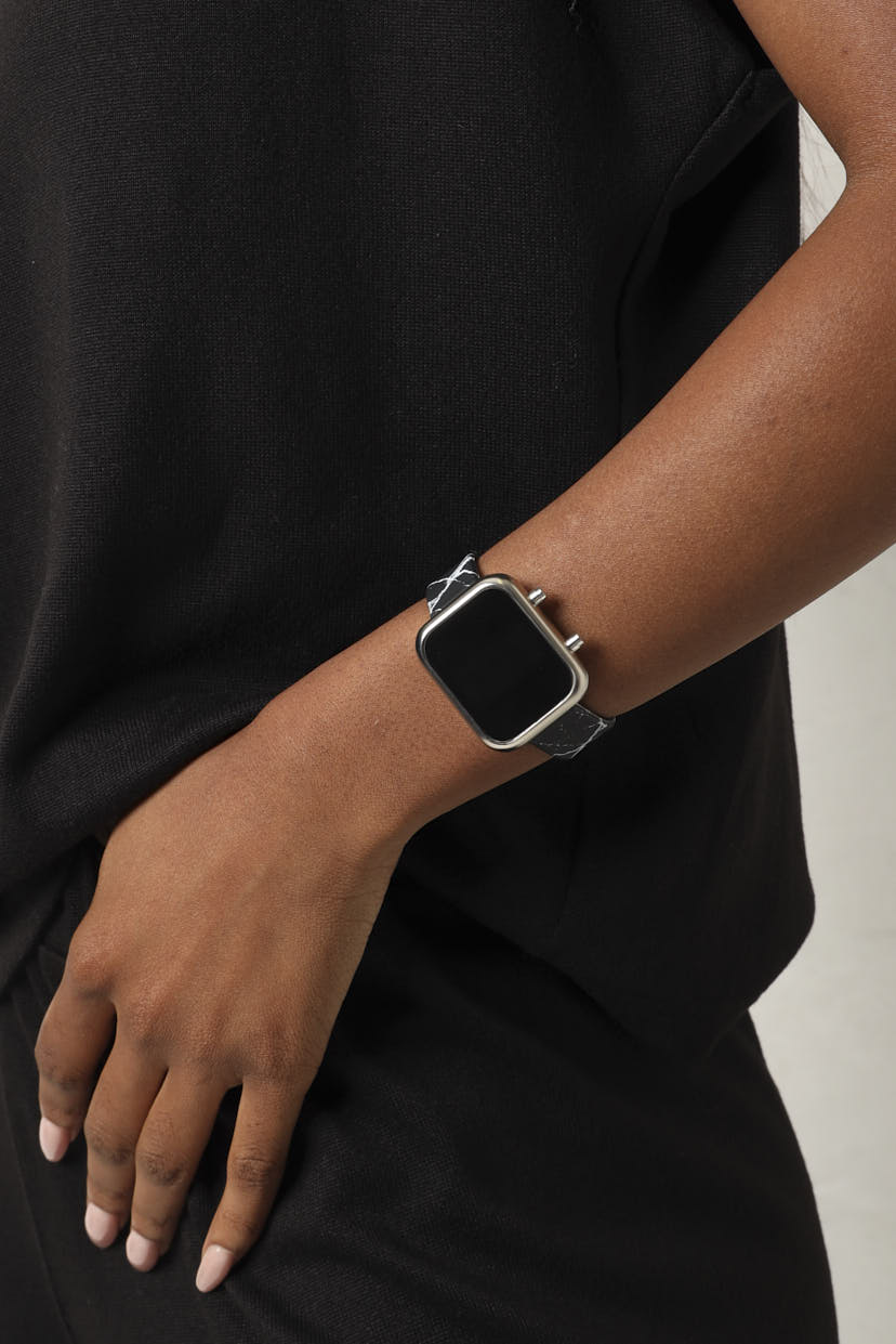 Stay on time with style! This sleek black digital watch features a bold printed strap that adds personality to your everyday look. Perfect for keeping up with your busy schedule while looking effortlessly cool. Water-resistant and ready for whatever your day throws at you.