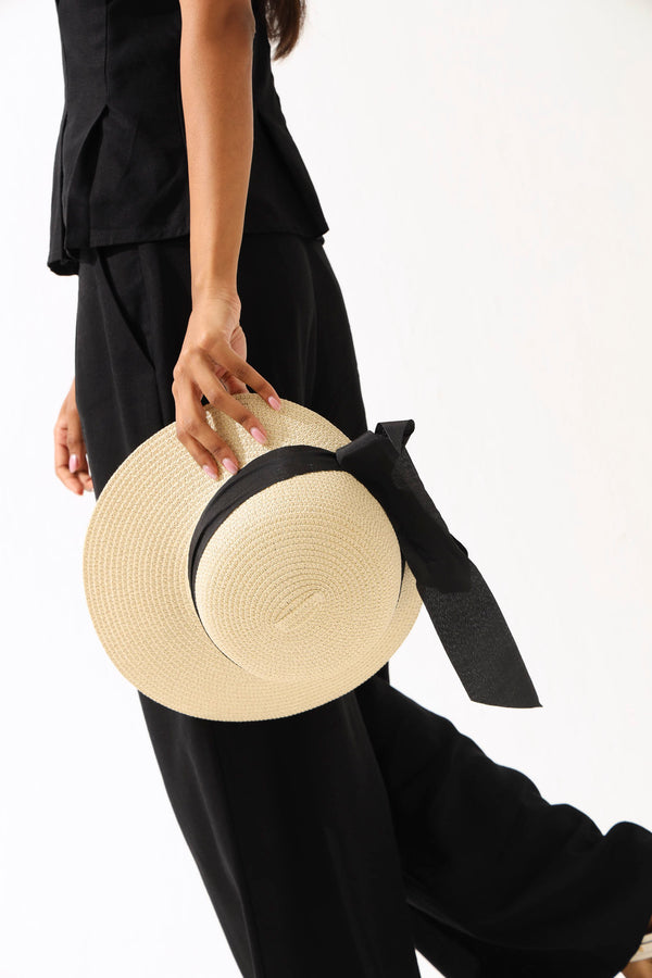 Ribbon Detail Straw Hat - Natural