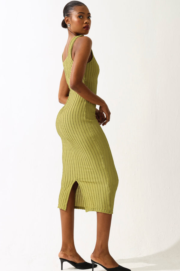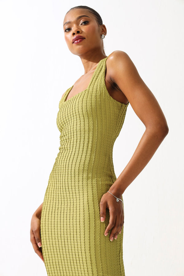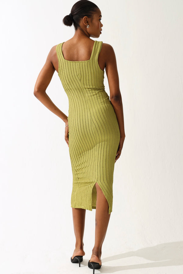 Sleeveless Textured Bodycon Dress - Chartreuse