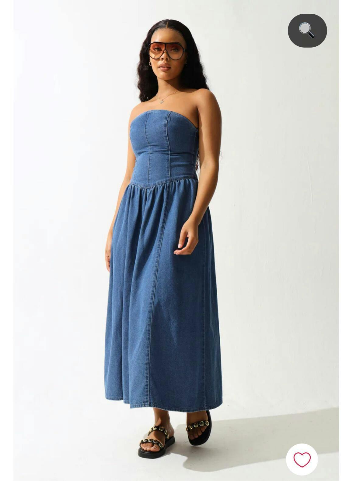Turn heads in this show-stopping strapless midi dress that combines vintage corset vibes with modern edge. The structured bodice cinches at all the right places, creating a flattering silhouette that feels both bold and elegant. Crafted in a versatile medium wash denim, it's the perfect canvas for styling—dress it up with heels and statement jewelry for date night, or keep it casual with sneakers and a denim jacket. The midi length hits that sweet spot between sophisticated and playful, making it ideal for everything from brunch to evening events. This dress proves that sometimes the best looks are the ones that make you feel absolutely unstoppable.