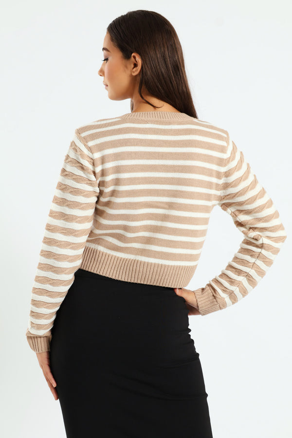 Stripe Cardigan - Beige/Cream