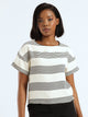 Brighten your day with this Stripe Tee featuring playful contrast piping at the neck. Its colorful stripes and quirky detailing make every outfit pop with fun energy. Soft and comfortable, it’s the perfect tee to keep your style fresh and spirited all day long.