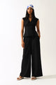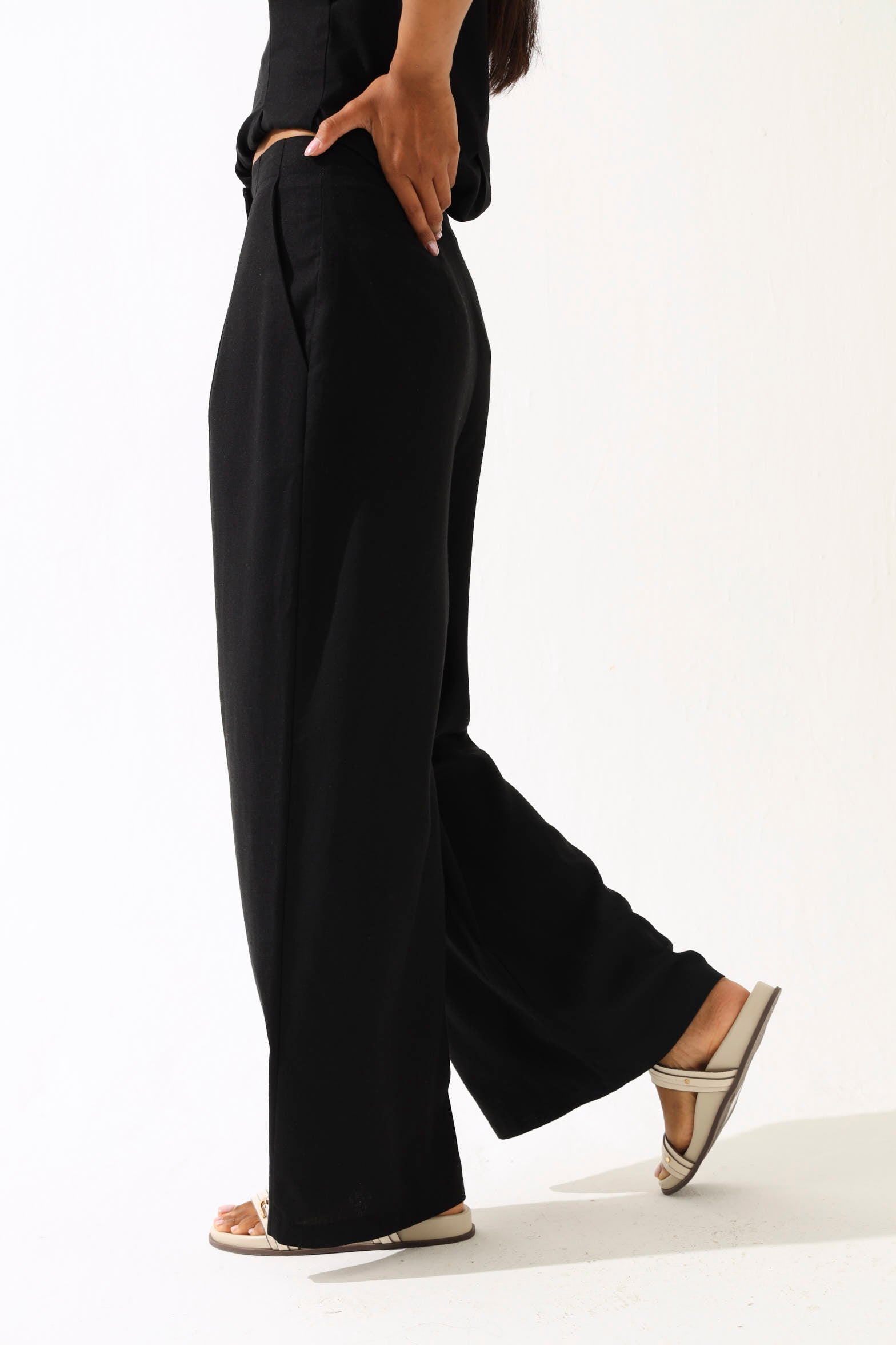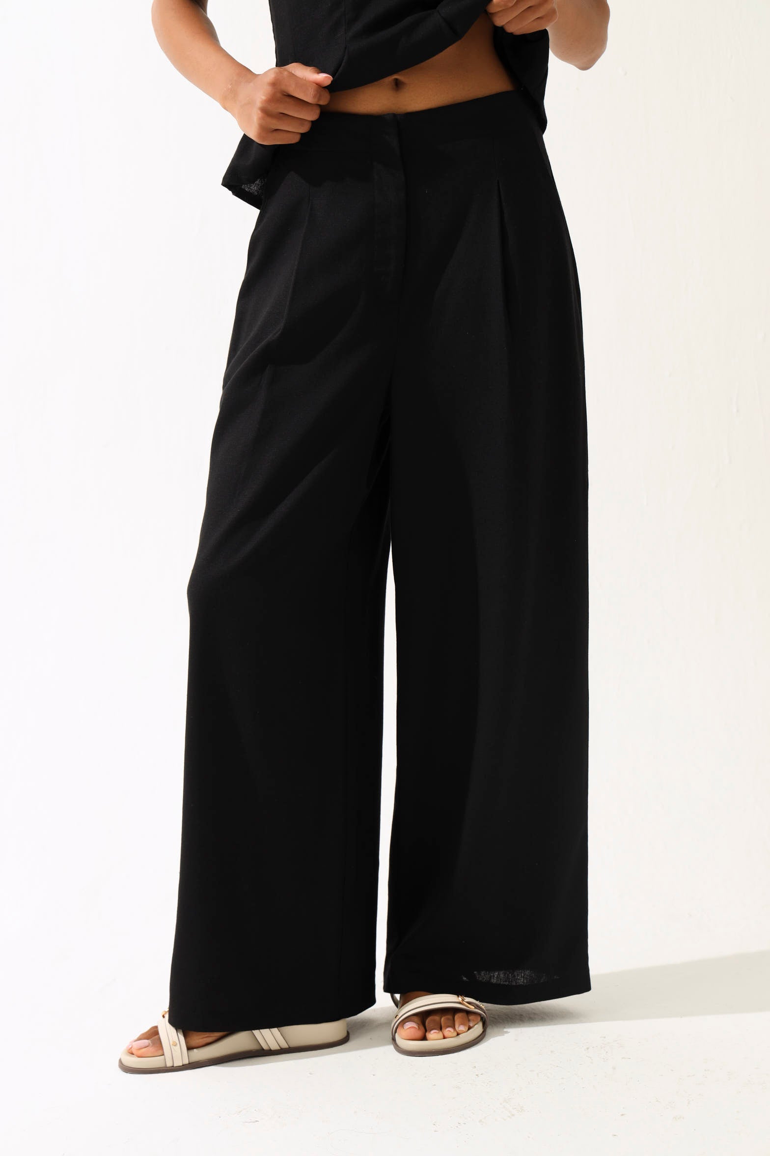 Meet your new favorite pants—structured linen trousers with bold pleat detailing in classic black. The crisp linen fabric breathes beautifully while maintaining its shape, keeping you cool and collected all day long. Strategic pleating down the front adds dimension and a touch of tailored sophistication that elevates your entire look. These aren't your average black pants; they're a style statement that works overtime from boardroom meetings to weekend brunches. Pair them with anything from silk camisoles to oversized sweaters and watch how effortlessly they transform your outfit. Comfort, structure, and undeniable style—what's not to love?