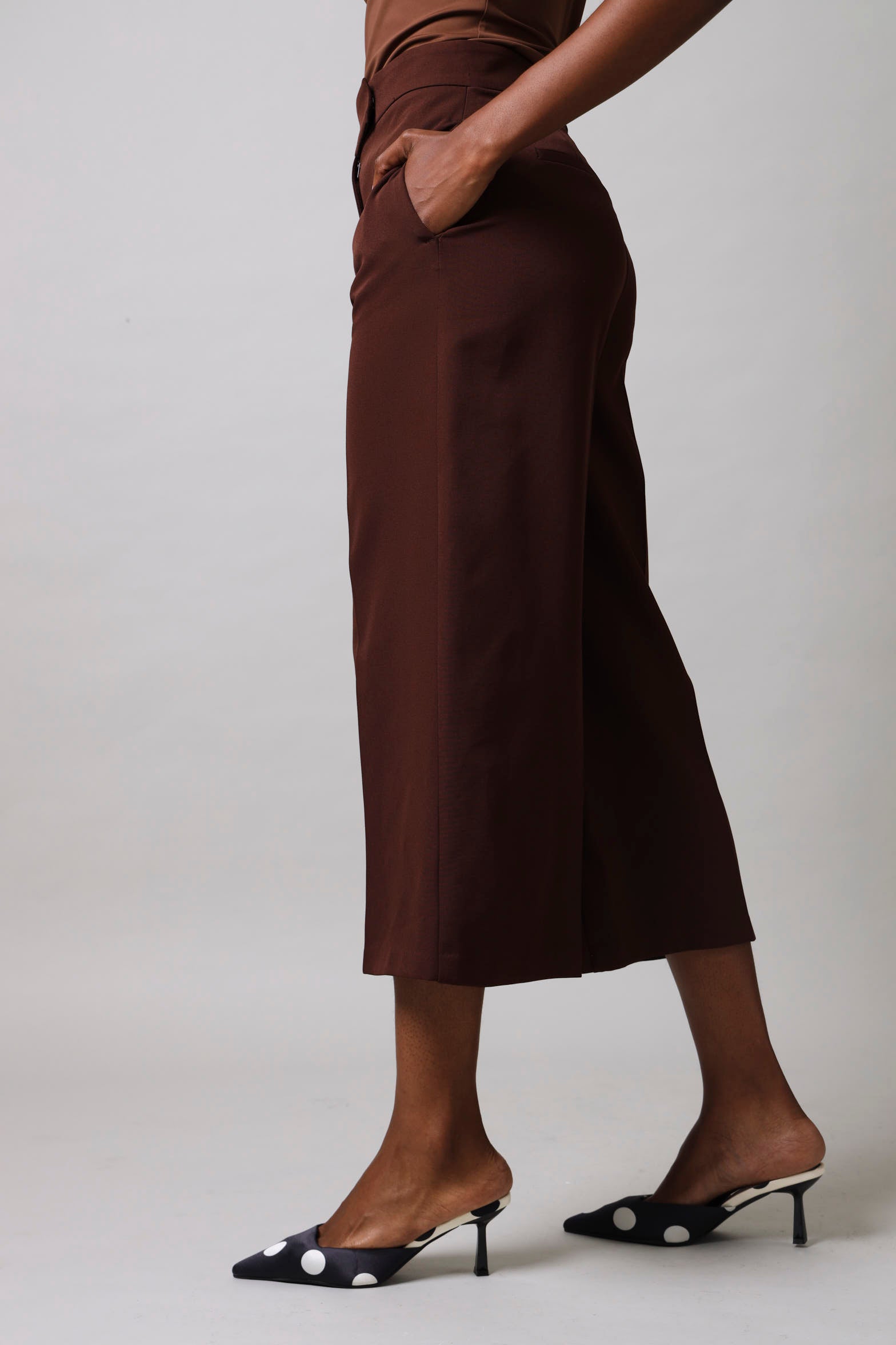 Tab Detail Culotte Pants - Chocolate