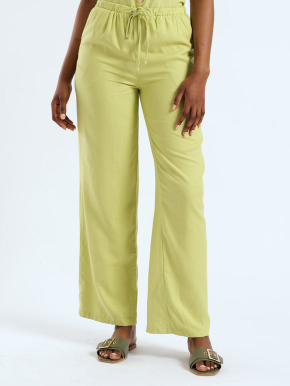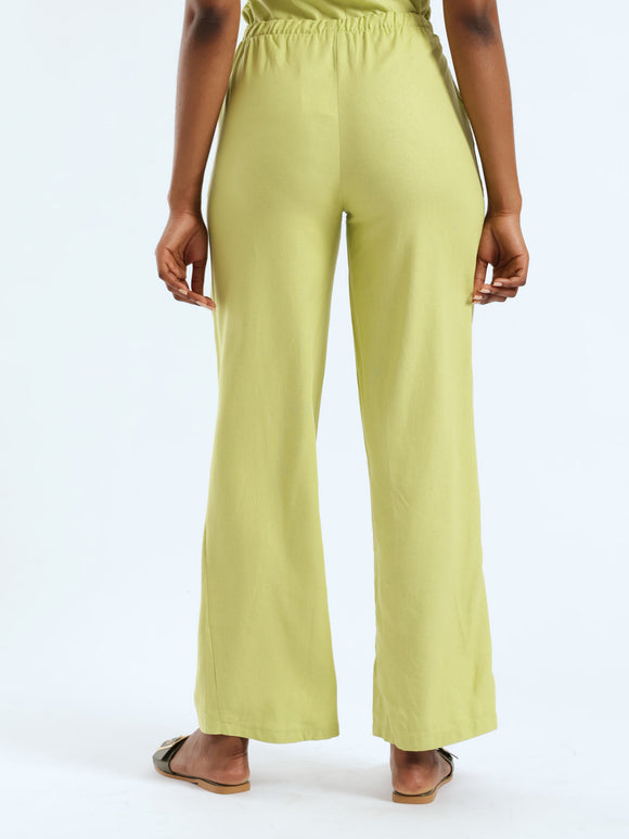 Crinkle Knit Wideleg Pants - Chartreuse