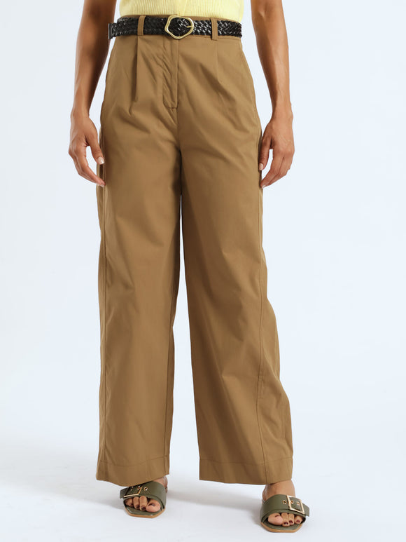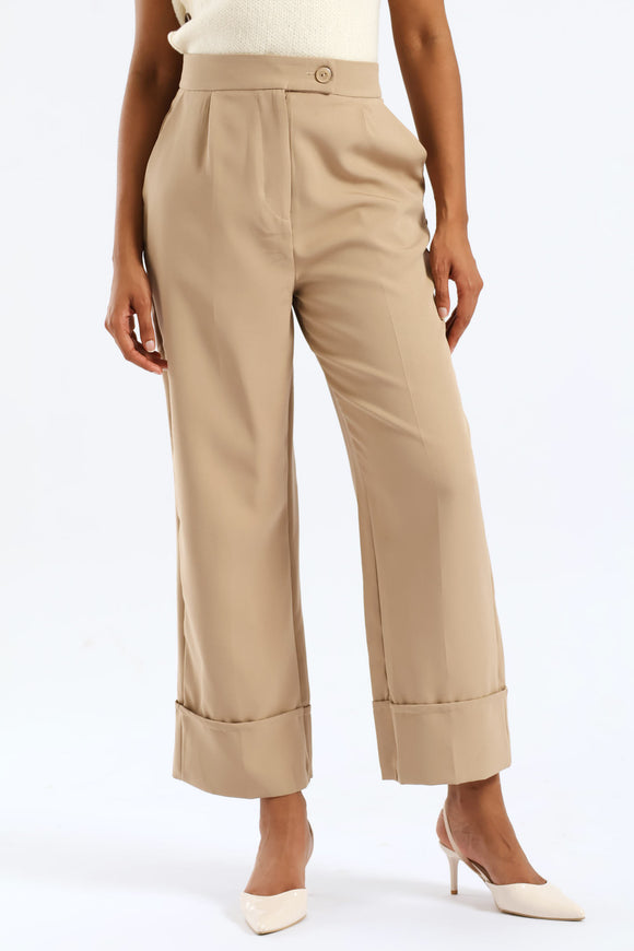Wideleg Pressed Crease Pants - Nude