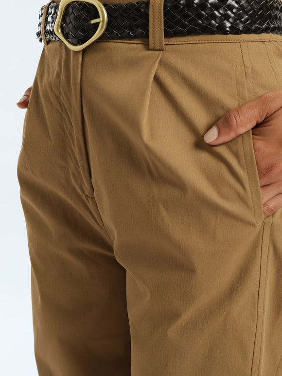 Elasticated Contrast Tape Barbi Pants - Beige