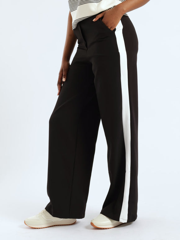 Trim Detail Wideleg Pants - Black