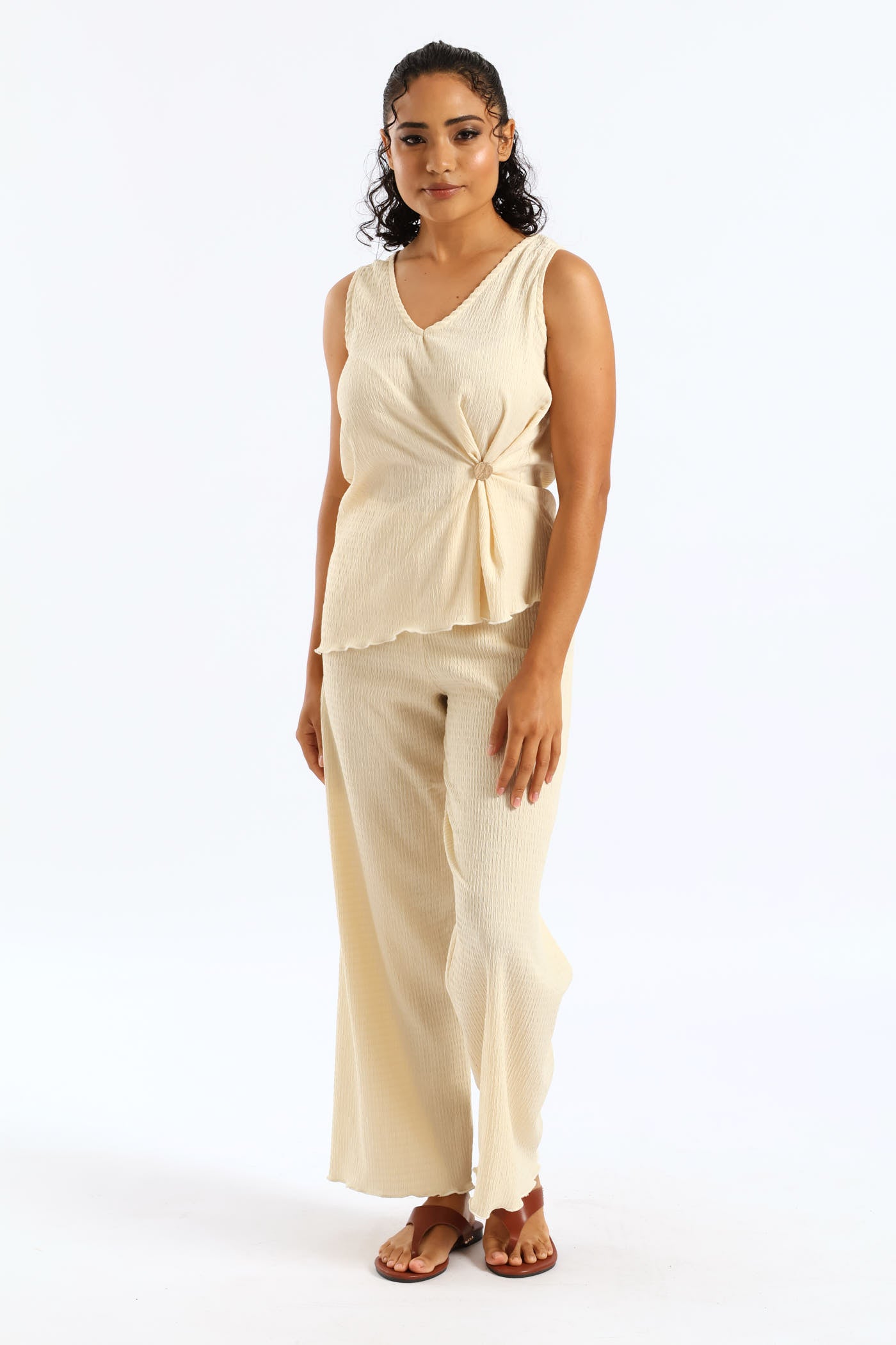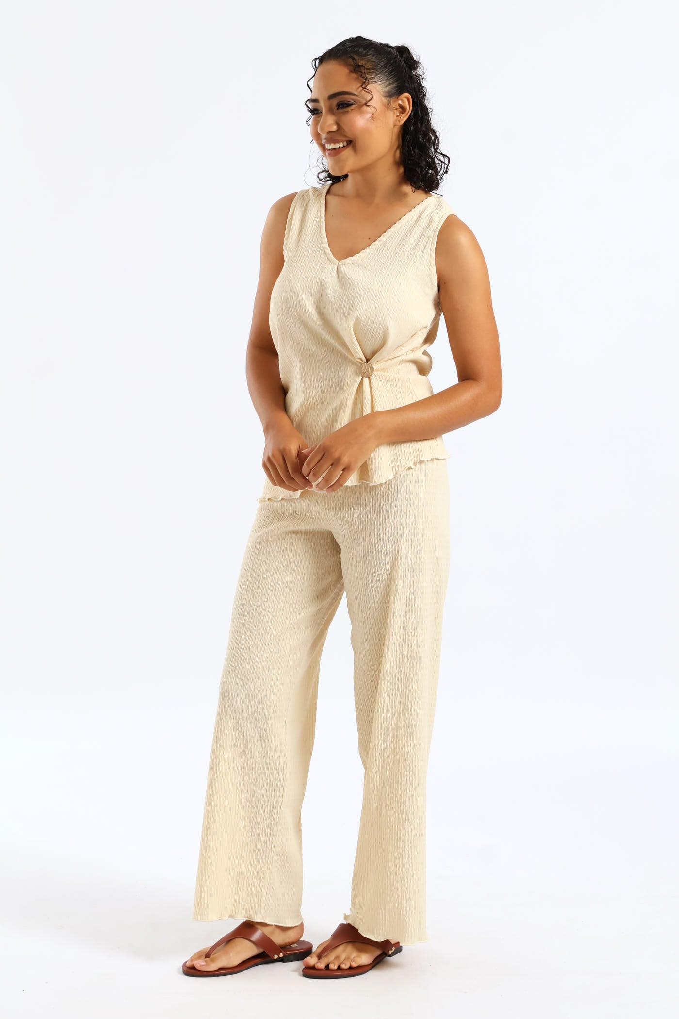 Step into comfort and style with these Crinkle Knit Culotte Pants in creamy soft tones. Designed with a relaxed, wide-leg fit, they offer breezy movement and a touch of playful charm. Perfectly paired as part of a matching set, these pants bring effortless chic to your casual wardrobe while keeping you cozy all day long.