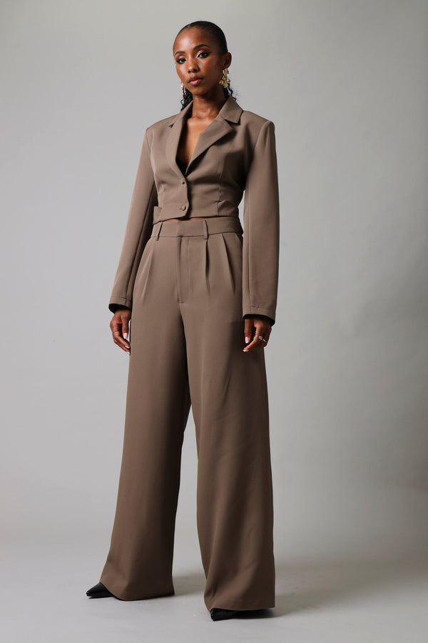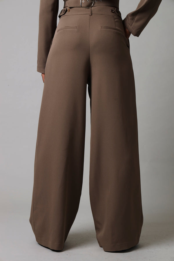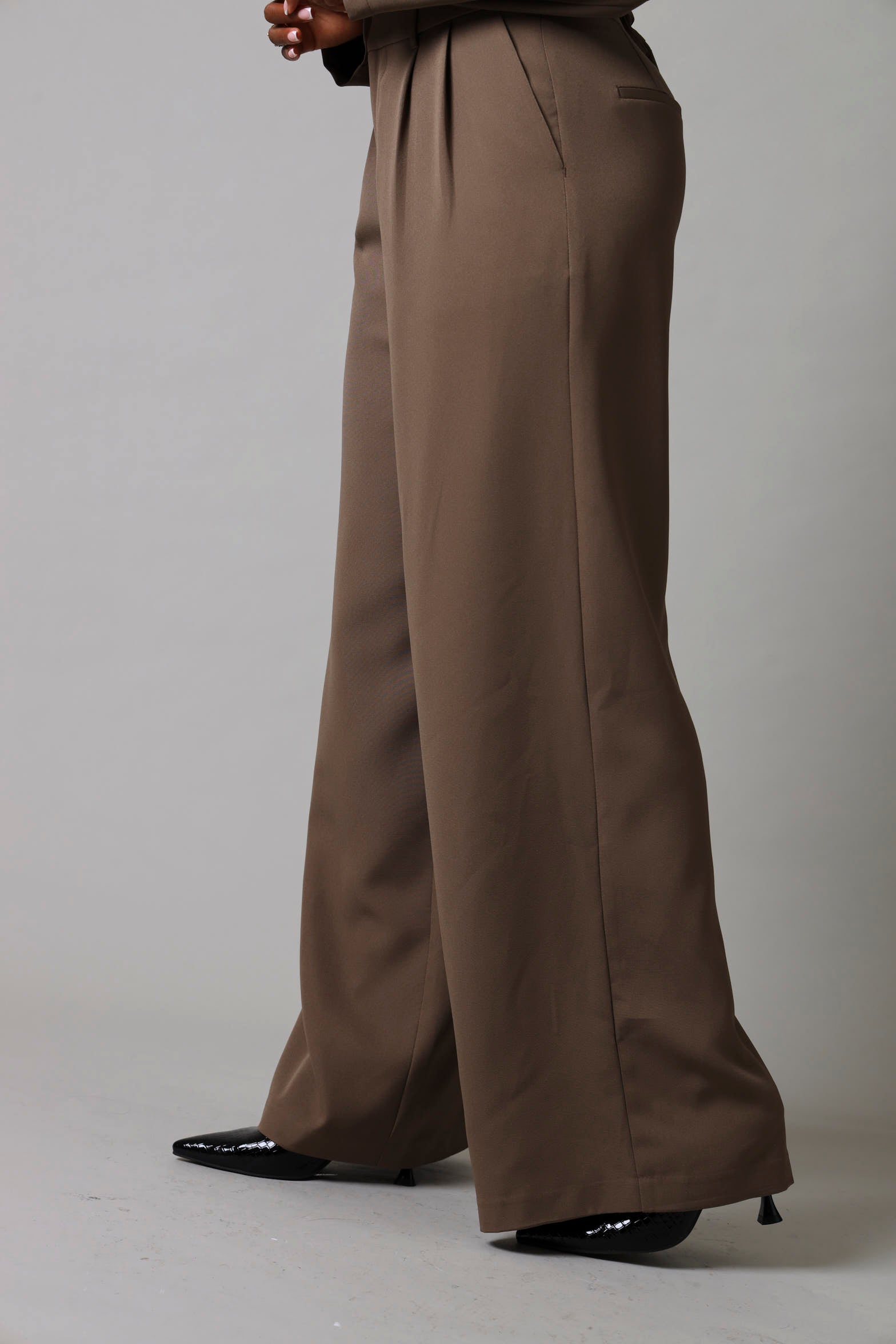 Strut your stuff in these pleat detail wideleg pants that prove comfort and confidence go hand in hand. The taupe tone is your new neutral obsession—it plays nice with everything while the pleated front adds just enough texture to keep things interesting. High-waisted and impossibly flattering, these pants are ready for whatever you throw at them. From boardroom to brunch, they're your ticket to looking effortlessly put-together.
