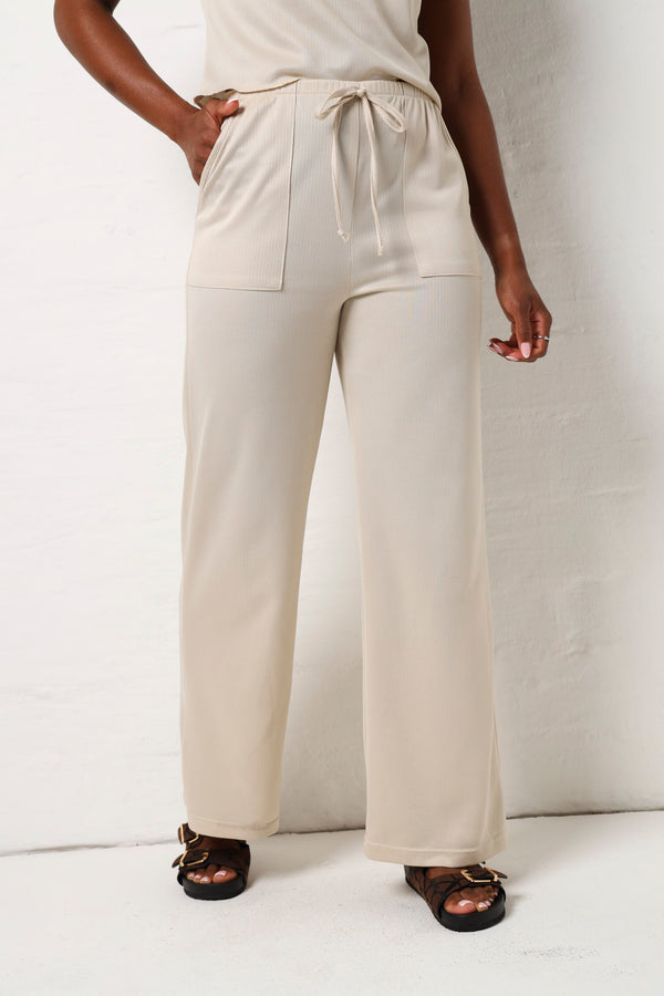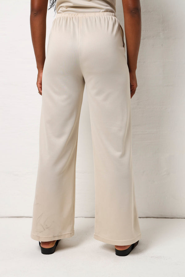 Soft Feel Textured Pant- Cream