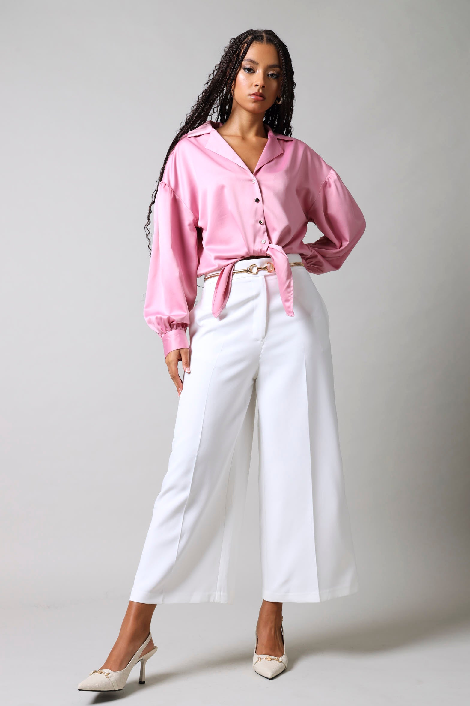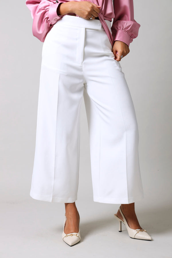 Step into effortless style with these Tab Detail Culotte Pants in crisp white. Featuring playful tab accents and a breezy wide-leg cut, they offer both comfort and a chic statement. Perfect for sunny days or casual outings, these pants make it easy to mix and match while keeping things light and fun.