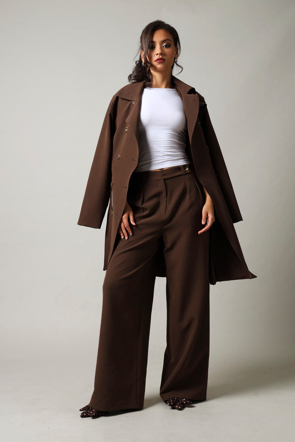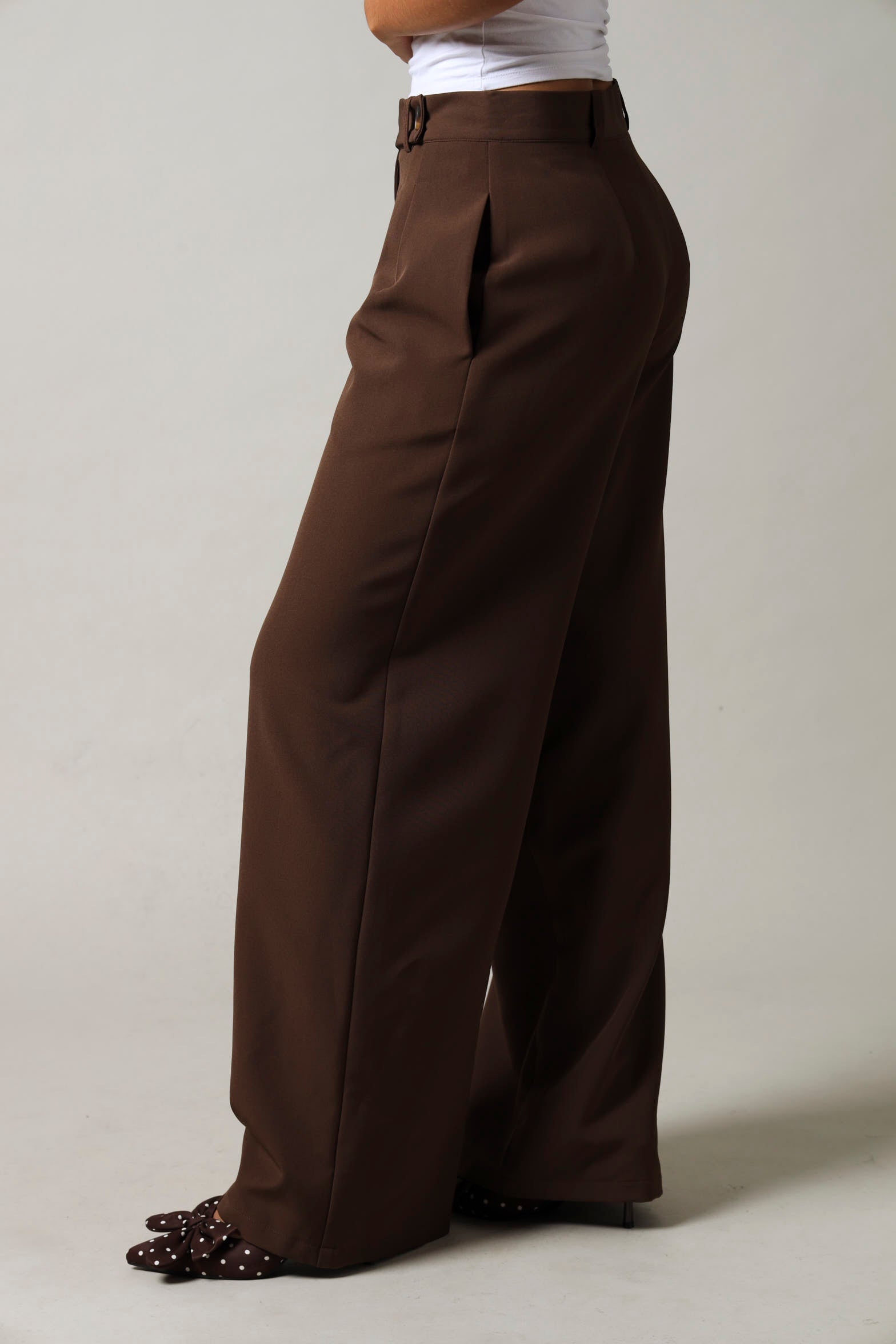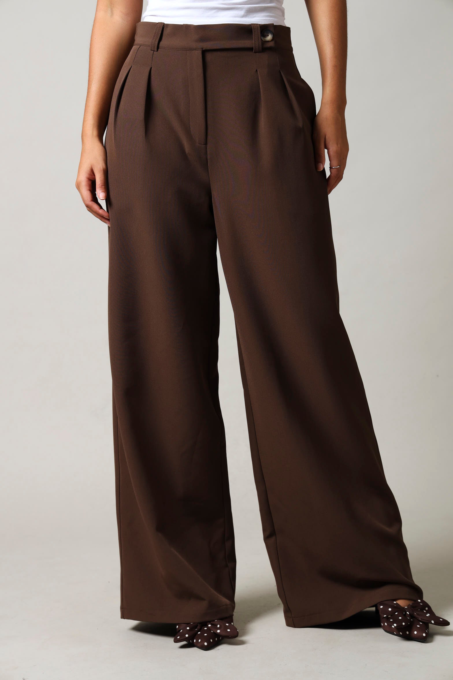 Effortless style meets comfort in these Tab Detail Wide Leg Pants. The relaxed wide-leg silhouette creates a flattering, contemporary look that works for both casual and semi-formal occasions. Thoughtful tab detailing adds visual interest and dimension to the design. Crafted for all-day wear, these brown pants are a versatile wardrobe essential that pairs seamlessly with everything from fitted tops to oversized blazers. Perfect for creating polished, modern outfits with minimal effort.