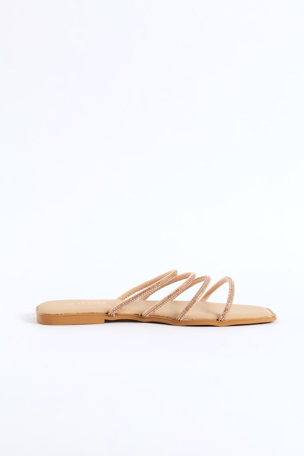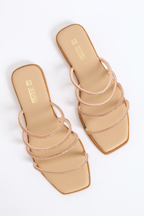 Shine bright and step playful in the 4 Diamante Strap Sandal in dazzling Rose Gold. With four sparkling straps that catch every eye, these sandals add just the right amount of fun and glam to any outfit. Perfect for making your moves sparkle!