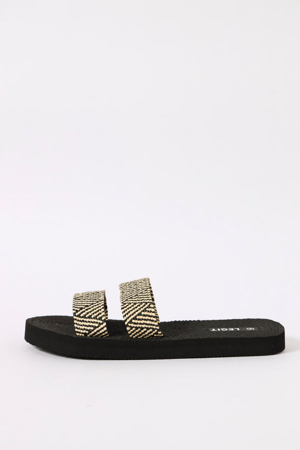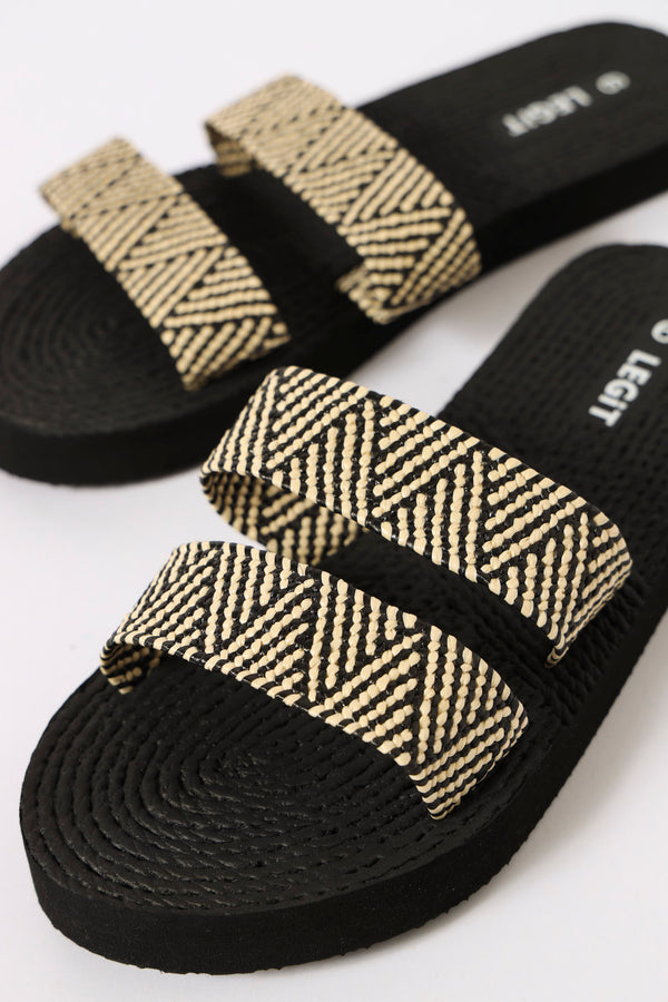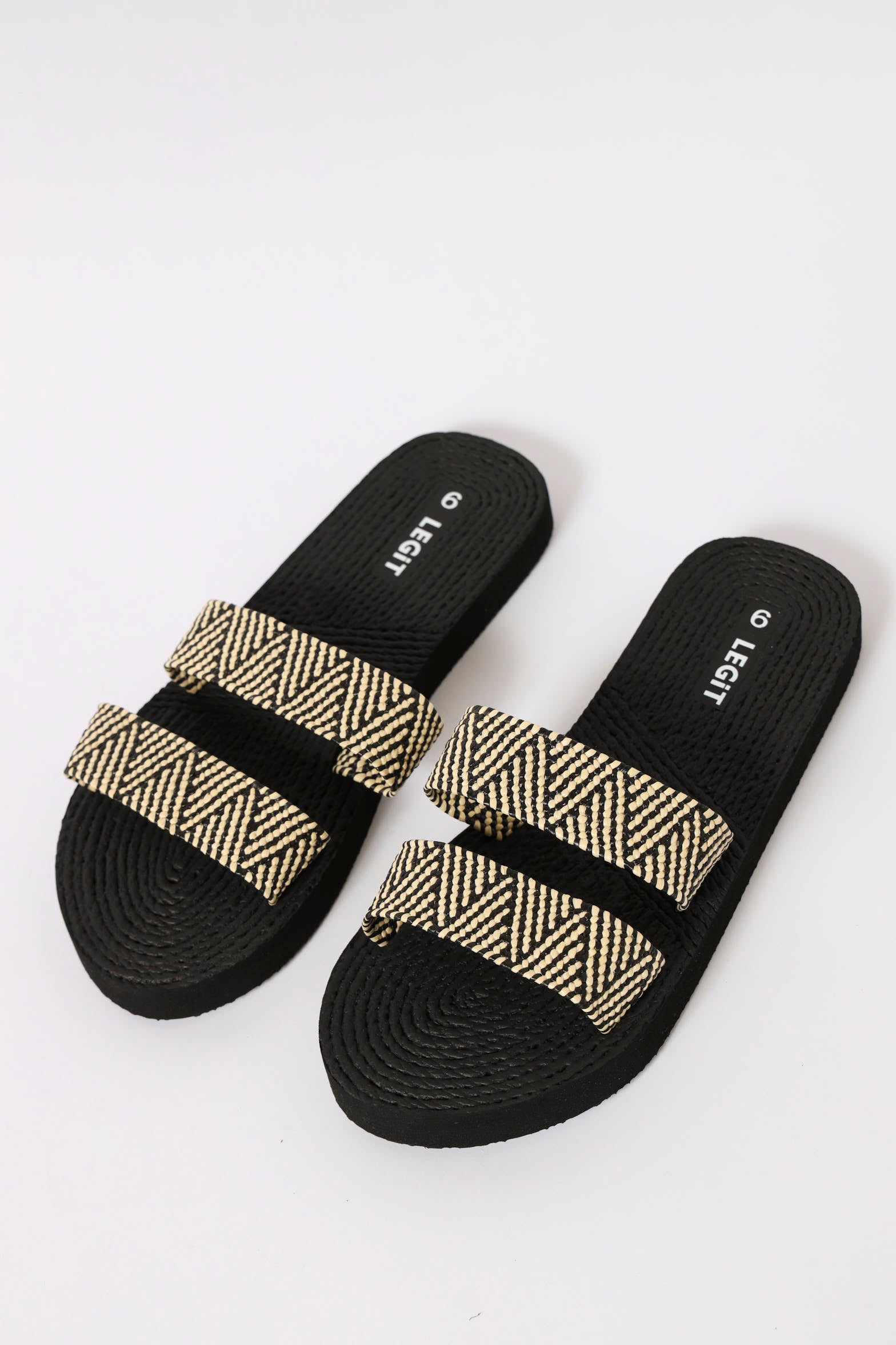 Step out in style with these double geometric striped strap sandals in bold black and white. The eye-catching striped pattern brings instant visual interest to your feet, while the dual straps ensure a secure, comfortable fit all day long. Perfect for summer adventures, casual outings, or adding a playful pop to your everyday ensemble, these sandals are your ticket to looking put-together without breaking a sweat. The classic monochrome palette pairs with virtually everything in your closet, making them endlessly versatile. From beach days to city strolls, these geometric beauties prove that footwear can be both fun and functional.