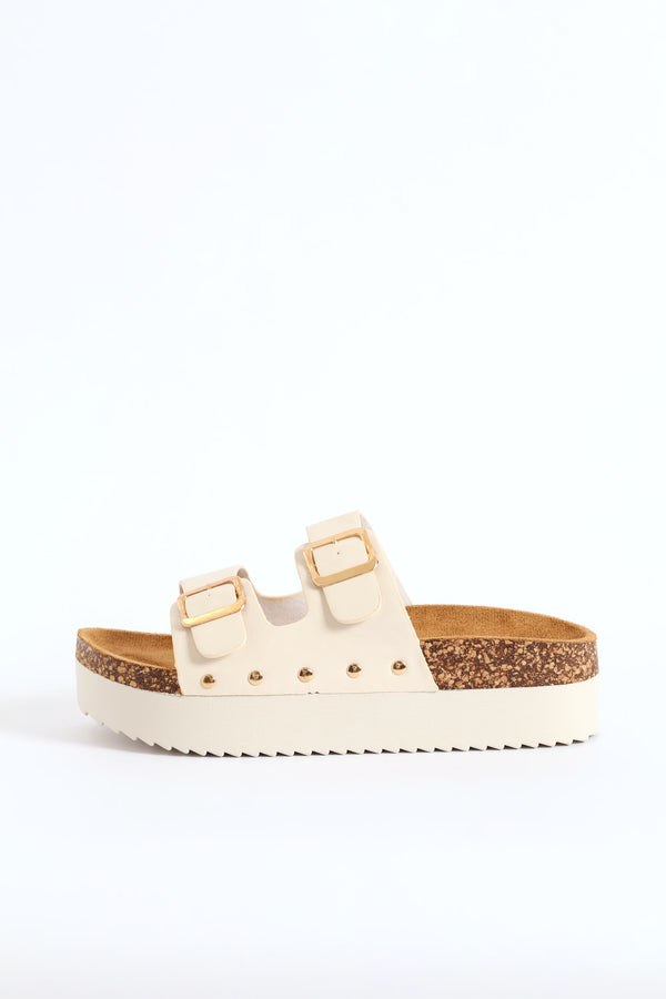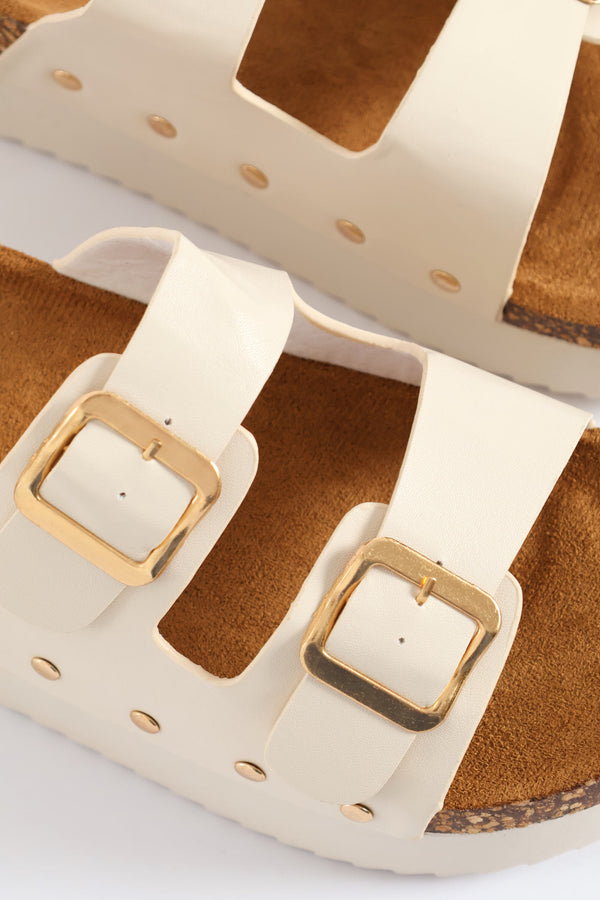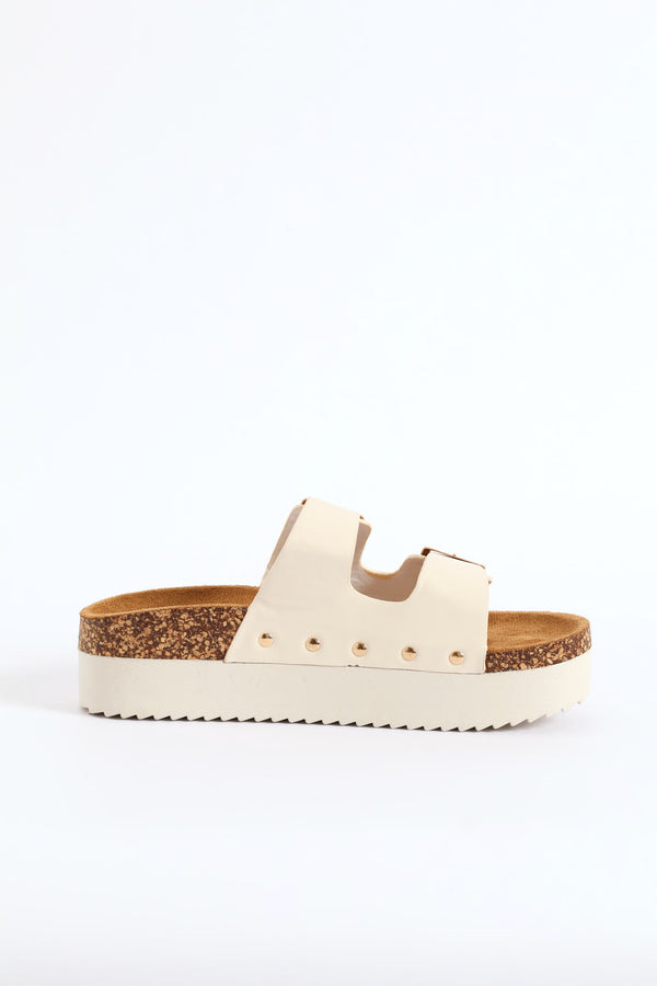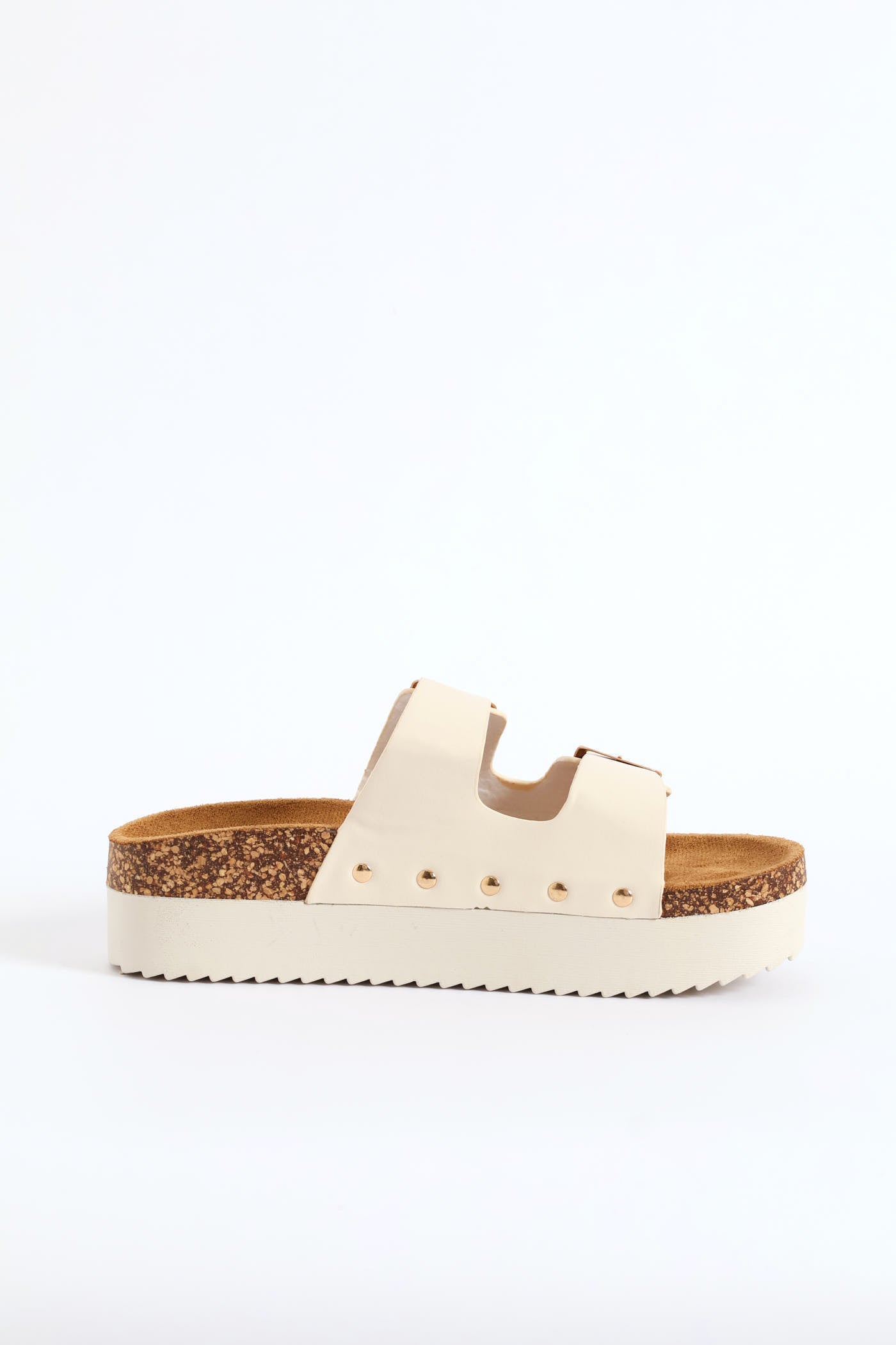 Step into easy style with these Double Strap Push In Mule Sandals in off white! The playful double straps keep your feet secure while the push-in design lets you slip them on in a flash. Perfect for casual days or quick errands, these mules bring effortless charm and comfort wherever you go.