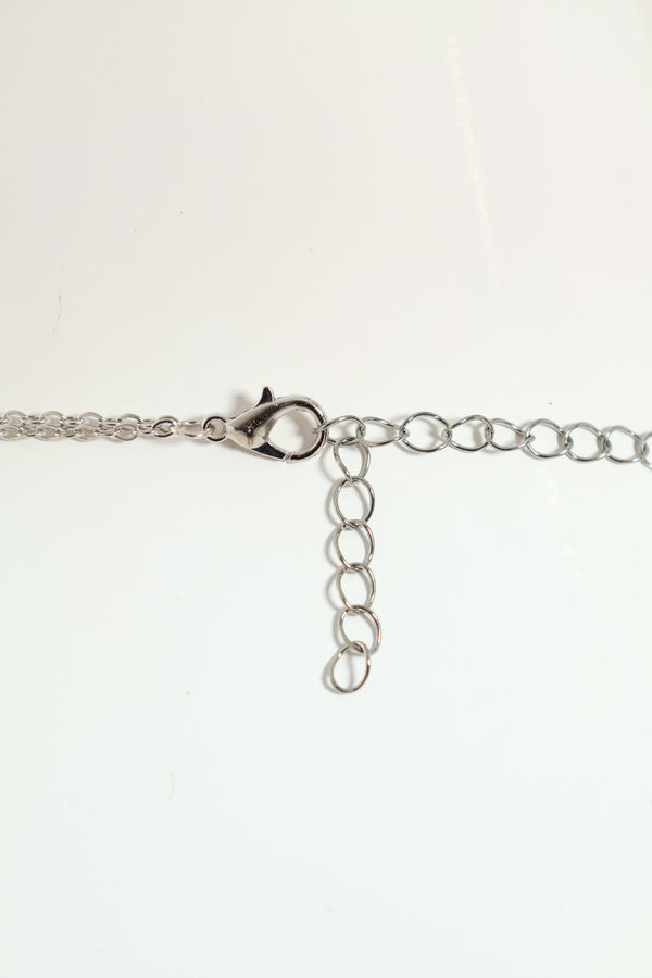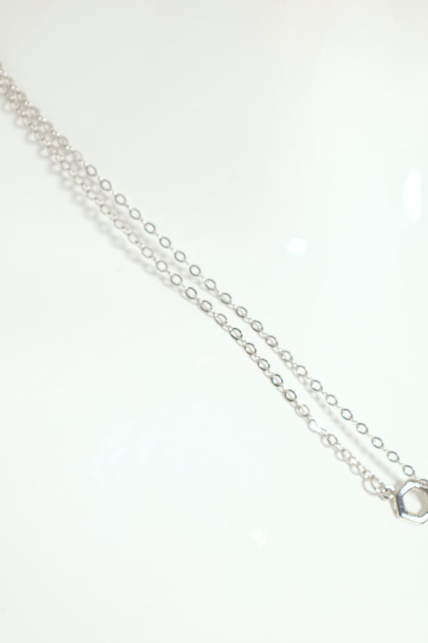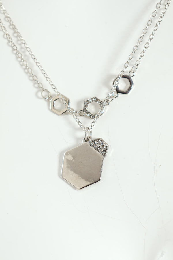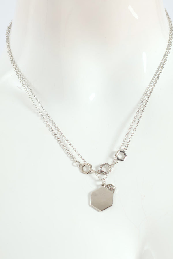 2 Layer Diamante Hexagon Pendant Necklace - Silver