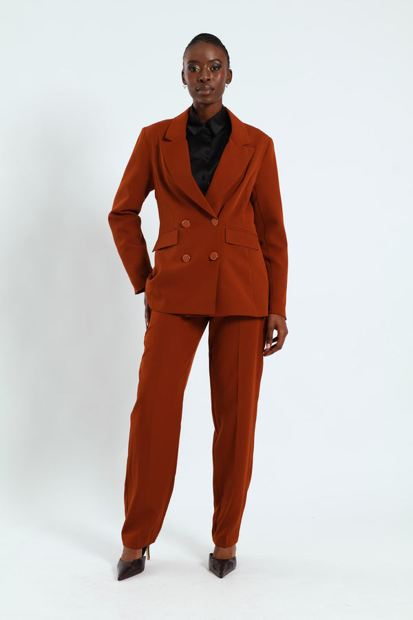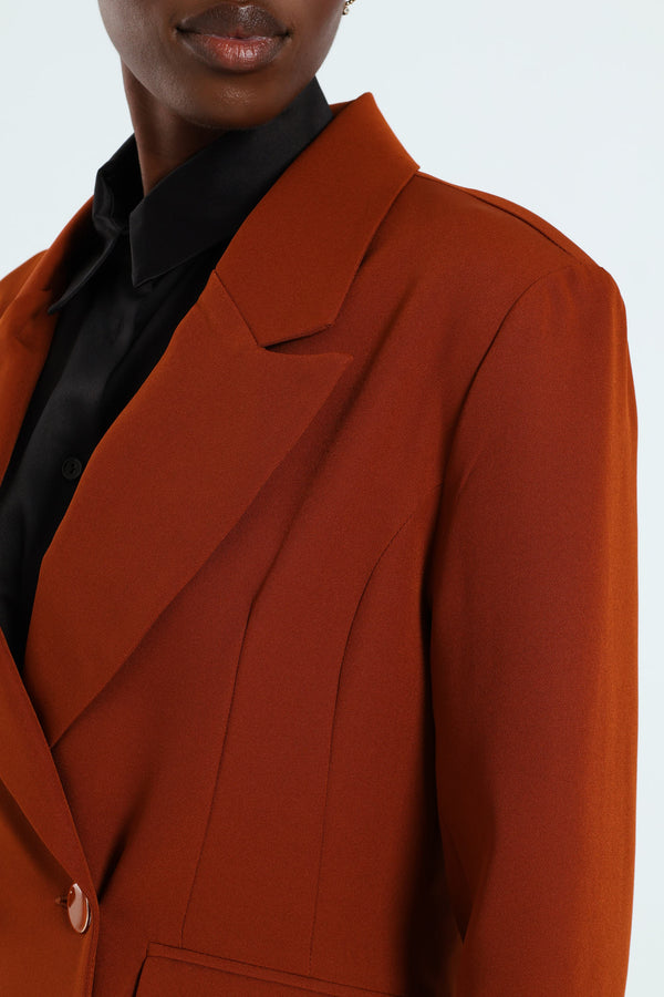 Double Breast Fancy Button Blazer - Rust