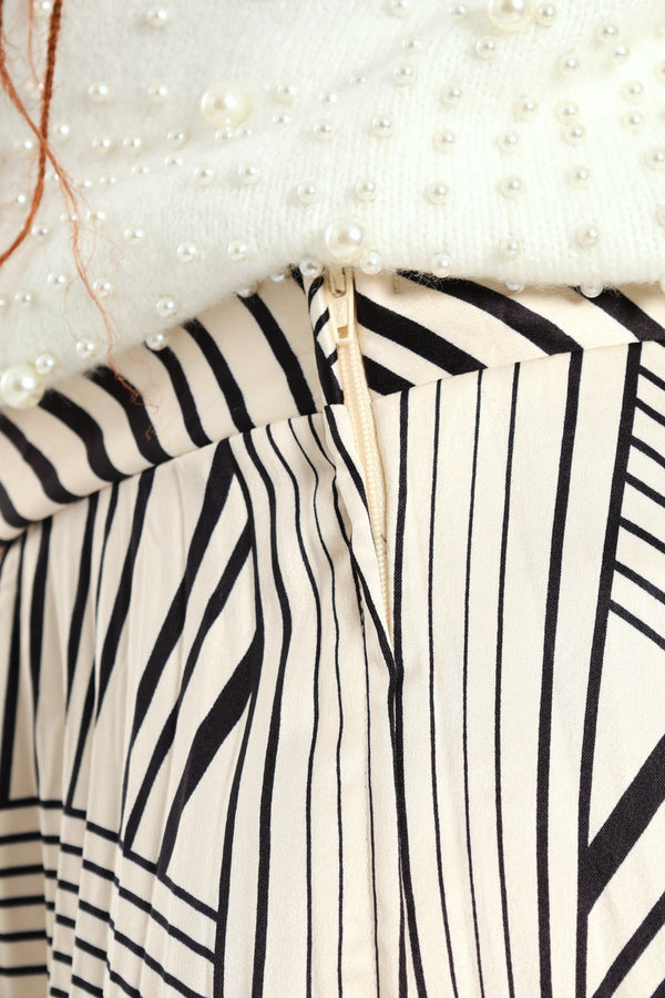 Indulge in the timeless elegance of our Long Length Pleated Skirt in Black/White. Designed for luxury and sophistication, this skirt features a beautiful pleated design that adds texture and movement to any outfit. The classic black and white colorway is effortlessly chic and versatile. Elevate your wardrobe with this premium piece.