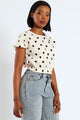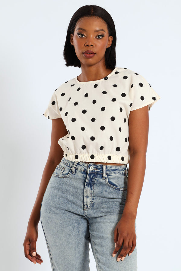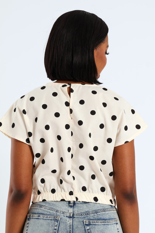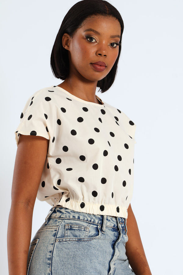 Polka Dot Poplin Top - Beige/Black
