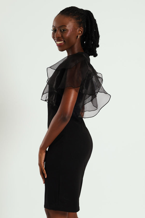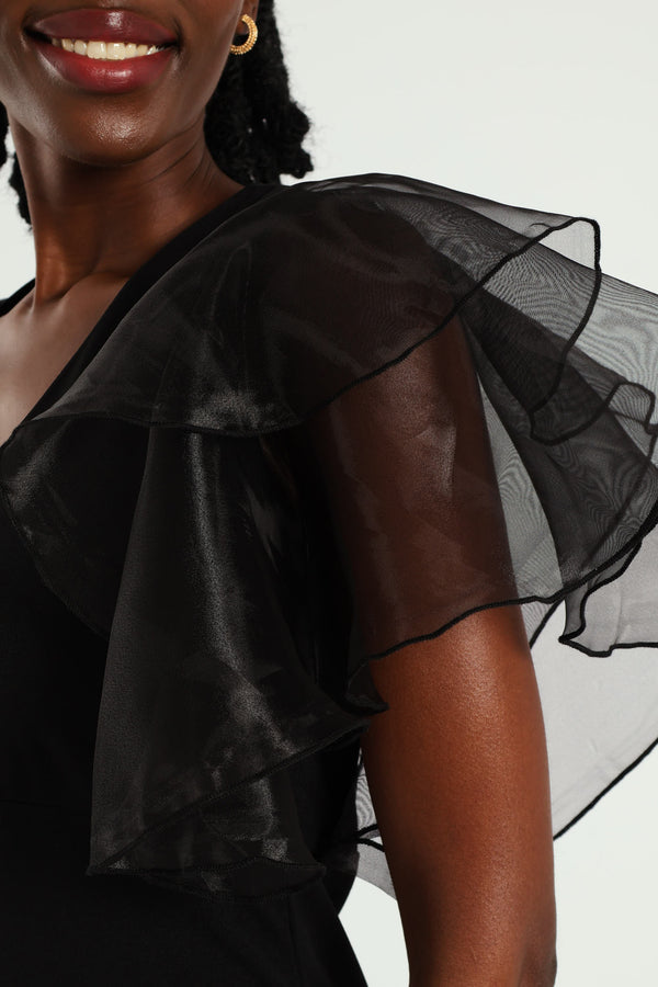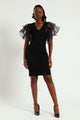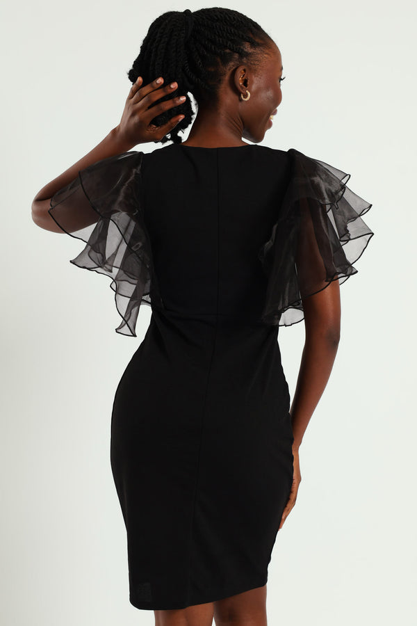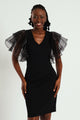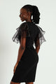 Elevate your style with this Short Organza Sleeve Combo Dress in classic black. Featuring delicate organza sleeves that add a touch of elegance, this dress combines comfort and sophistication for any occasion. Its flattering silhouette ensures you look effortlessly chic, making it a versatile addition to your wardrobe. Perfect for both day and evening wear, this dress promises to enhance your confidence and grace.