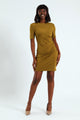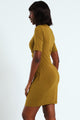 Short Sleeve Gauged Body Mini Dress - Chartreuse