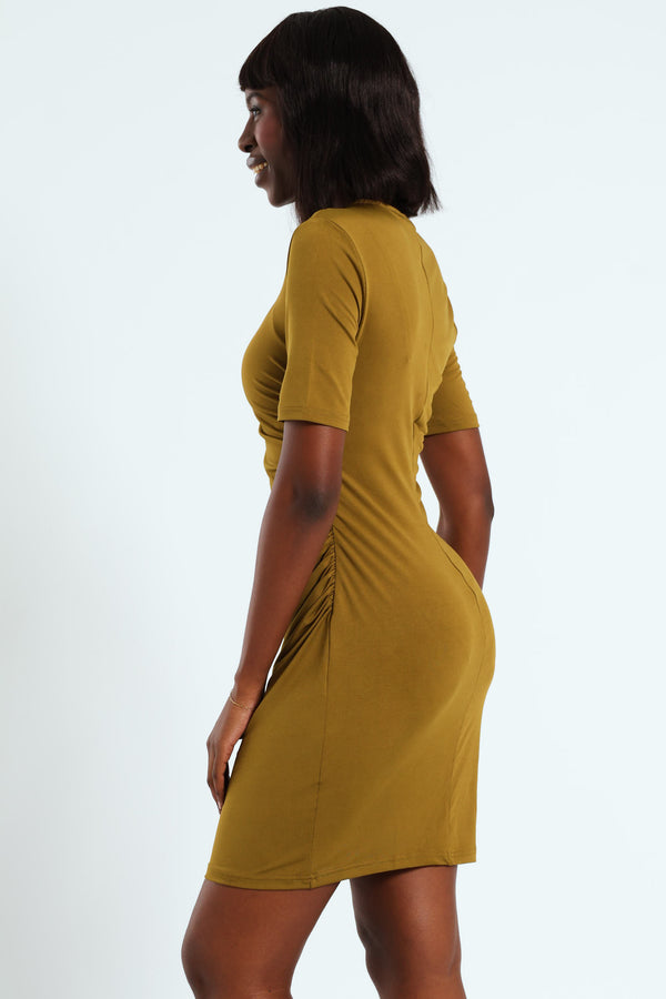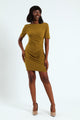 Turn heads in this Short Sleeve Gauged Body Mini Dress in lively chartreuse! Its snug, gauged fit highlights your curves while the mini length adds a flirty vibe. Perfect for sunny days or nights out, this dress brings bold color and playful style together effortlessly.