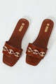 Three Chunky Link Trim Flat Mule Sandal - Tan