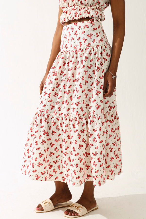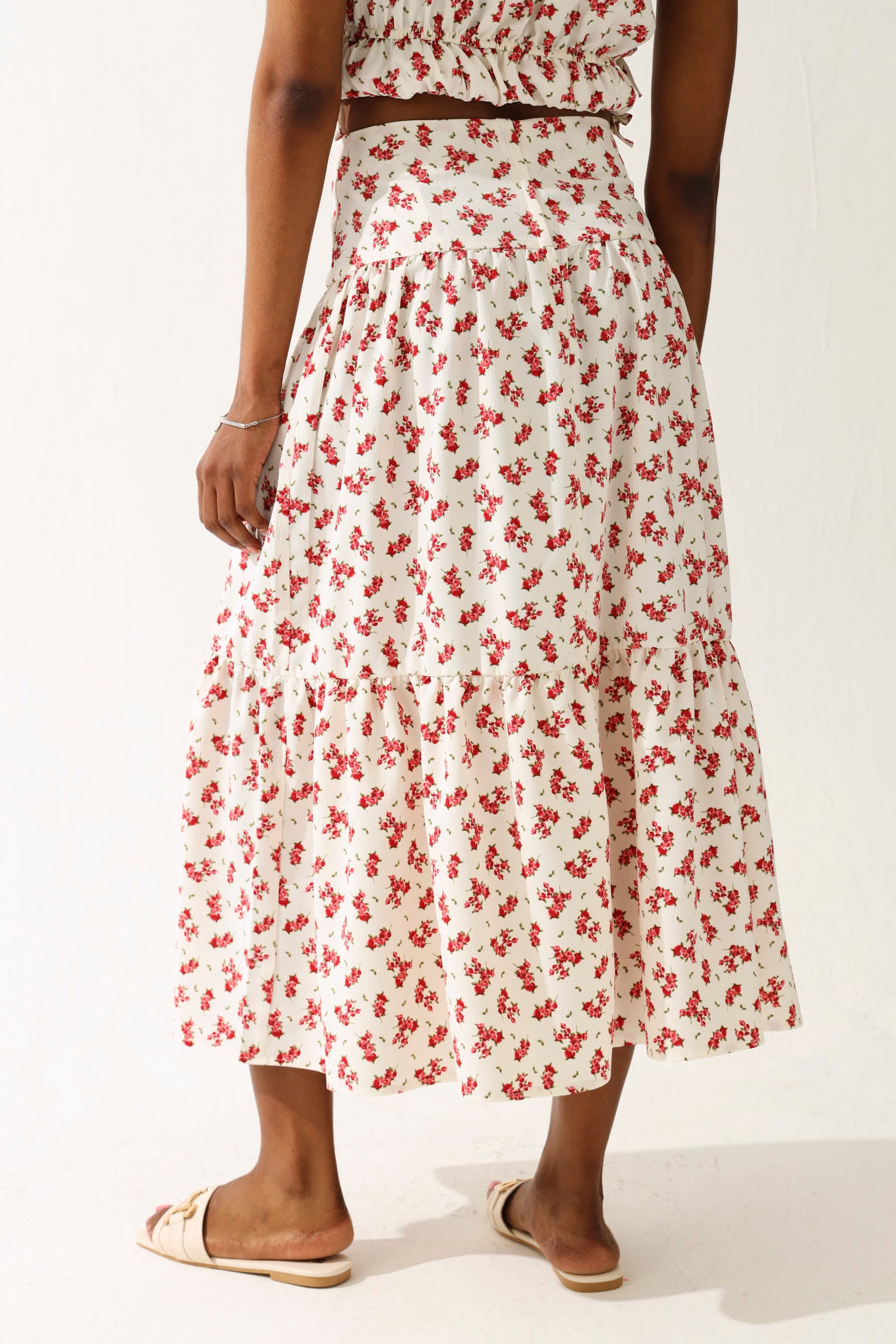 Twirl into spring with this stunning floral tiered maxi skirt that's equal parts romantic and fun. Layered tiers create beautiful movement and dimension, while the vibrant multi-colored floral print brings joy to every step. Perfect for garden parties, casual outings, or whenever you want to feel effortlessly chic. The flowing silhouette flatters all body types and pairs beautifully with everything from crop tops to cozy sweaters. Embrace your inner flower child and let this skirt do the talking.