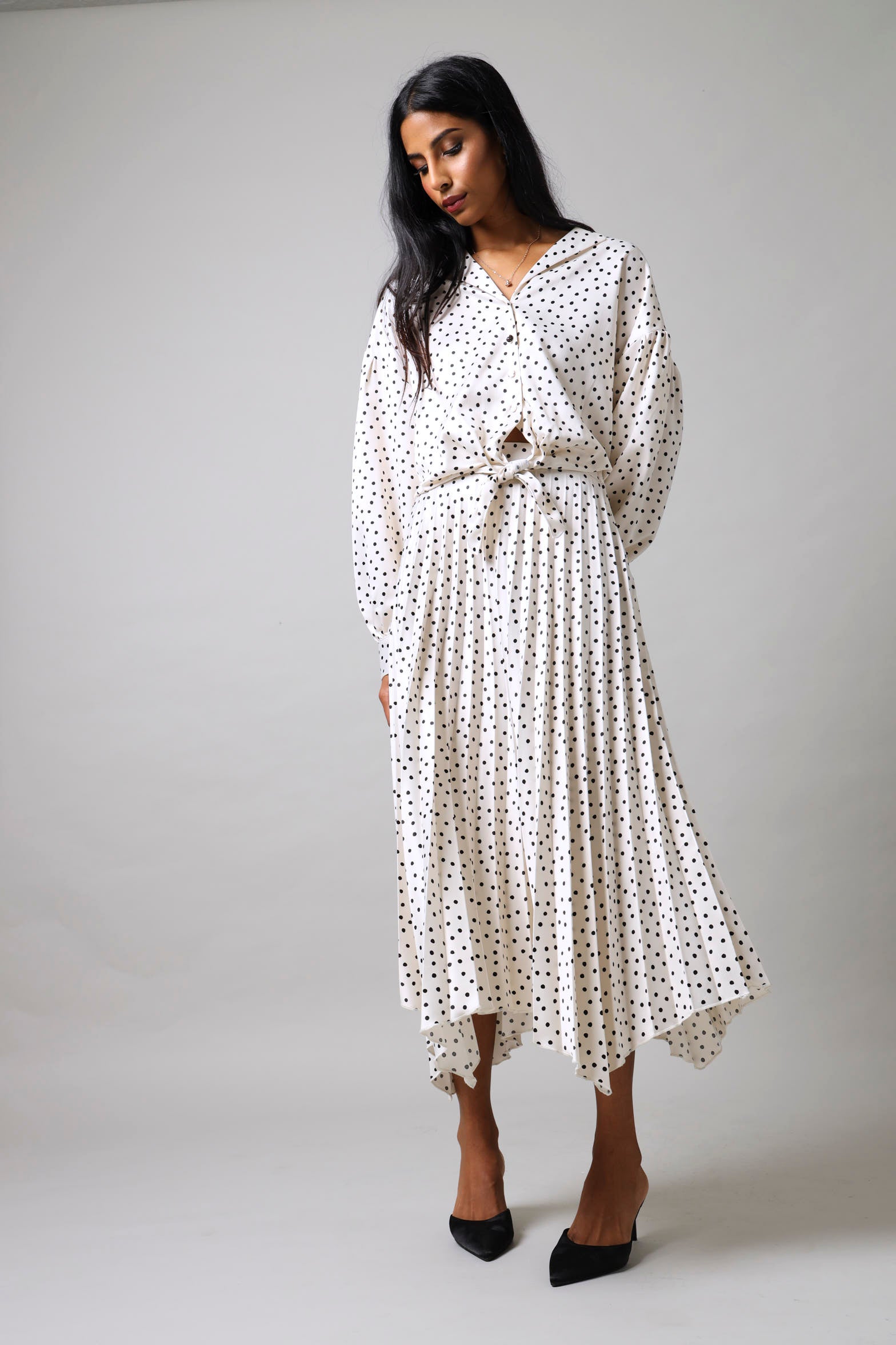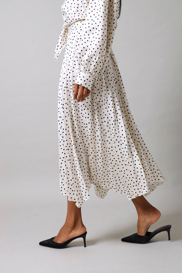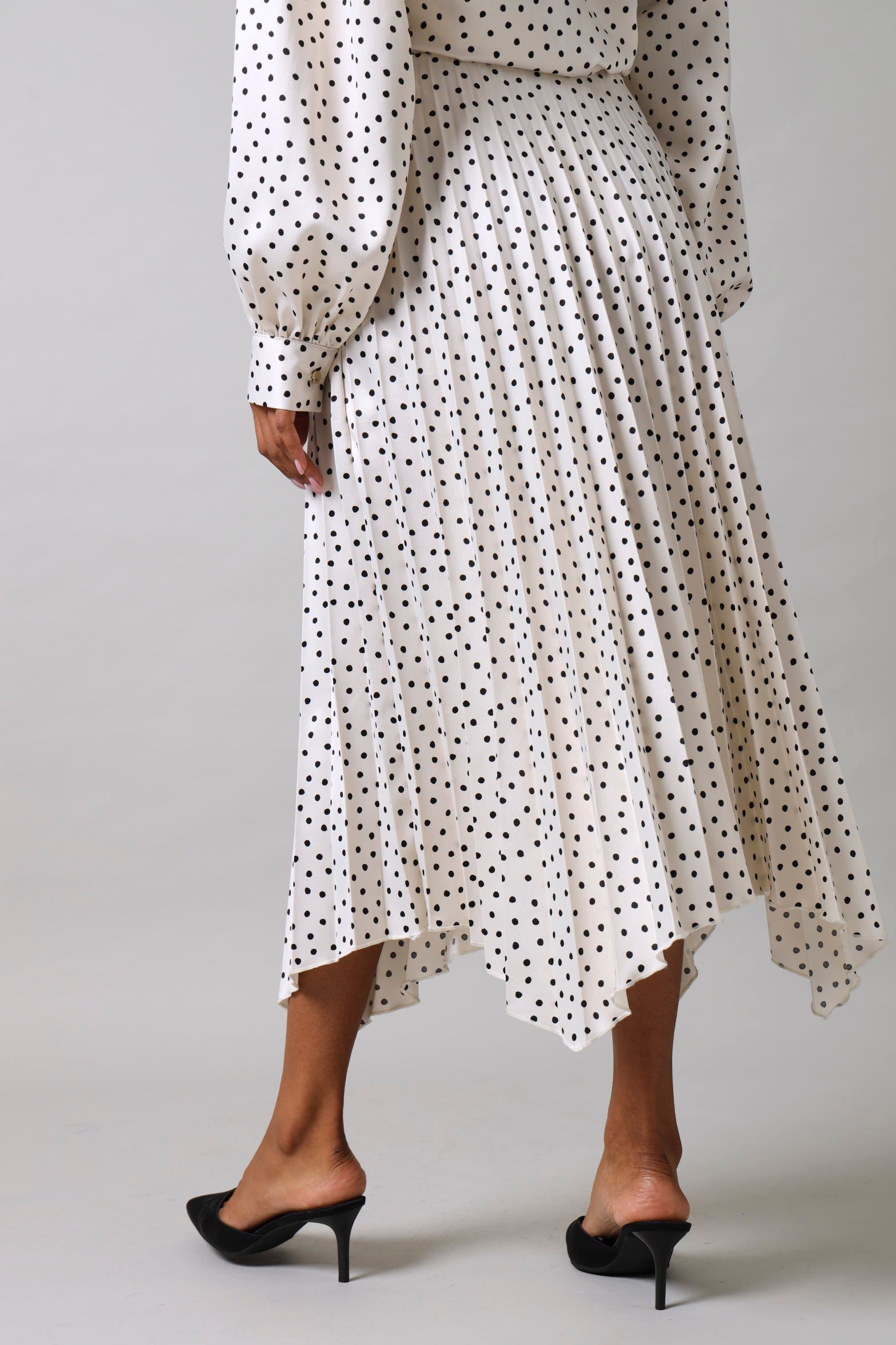 Make a statement with this striking hanky hem pleated skirt in classic white and black. The crisp pleats create beautiful movement and dimension, while the contrasting color-block design adds modern edge to your wardrobe. The playful hanky hem detail brings a cheeky, flirty vibe that's perfect for those who love to stand out. Whether you're heading to brunch, a night out, or just want to inject some personality into your everyday look, this skirt delivers instant style without trying too hard. Pair it with a simple tee or dress it up with a blouse, either way, you're guaranteed to turn heads.