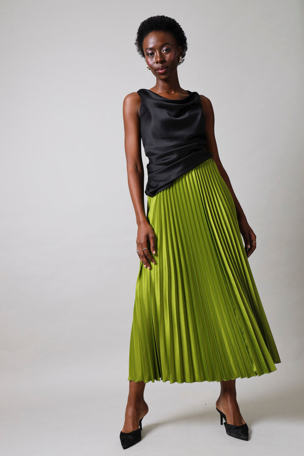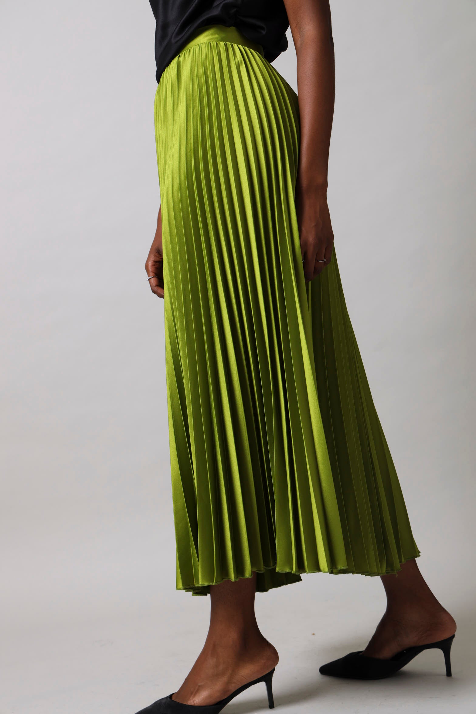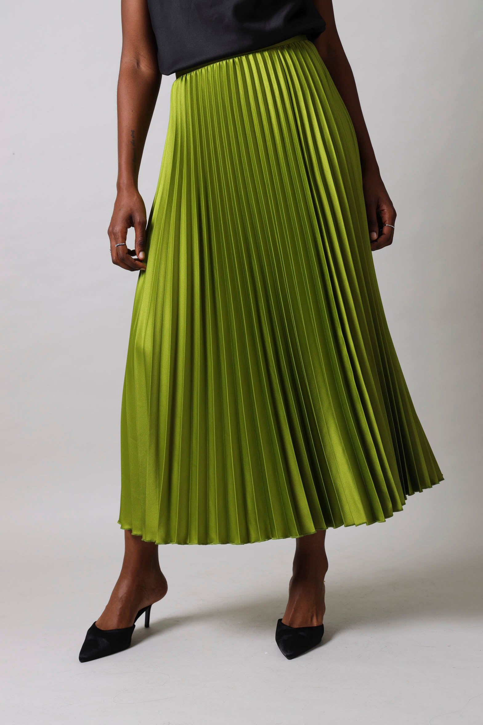 Embrace timeless elegance with this long length pleated skirt in gorgeous green. The flowing pleats create graceful movement with every step, while the maxi silhouette brings an air of understated sophistication to your wardrobe. This verdant hue is both calming and captivating, offering a refreshing alternative to everyday neutrals. Whether you're dressing for a garden party, weekend getaway, or simply want to feel fabulous in your everyday life, this skirt delivers effortless charm. Pair it with fitted tops to balance the volume, or go full drama with oversized sweaters. A playful piece that proves long skirts are anything but boring.