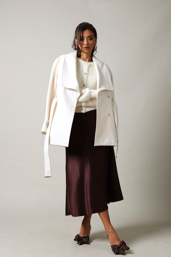 Crinkle Knit Wrap Skirt - White