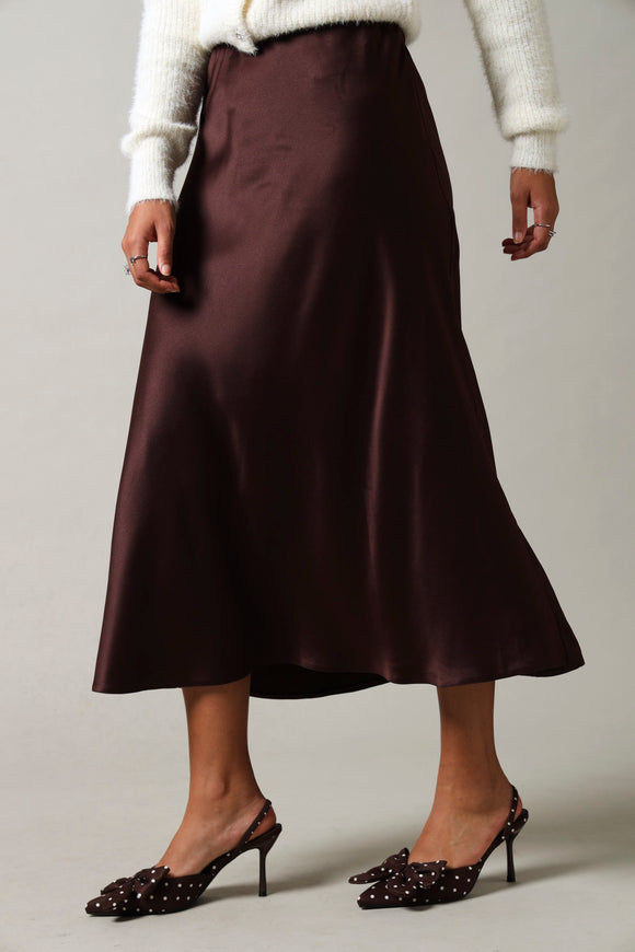 Satin Slip Skirt - Brown