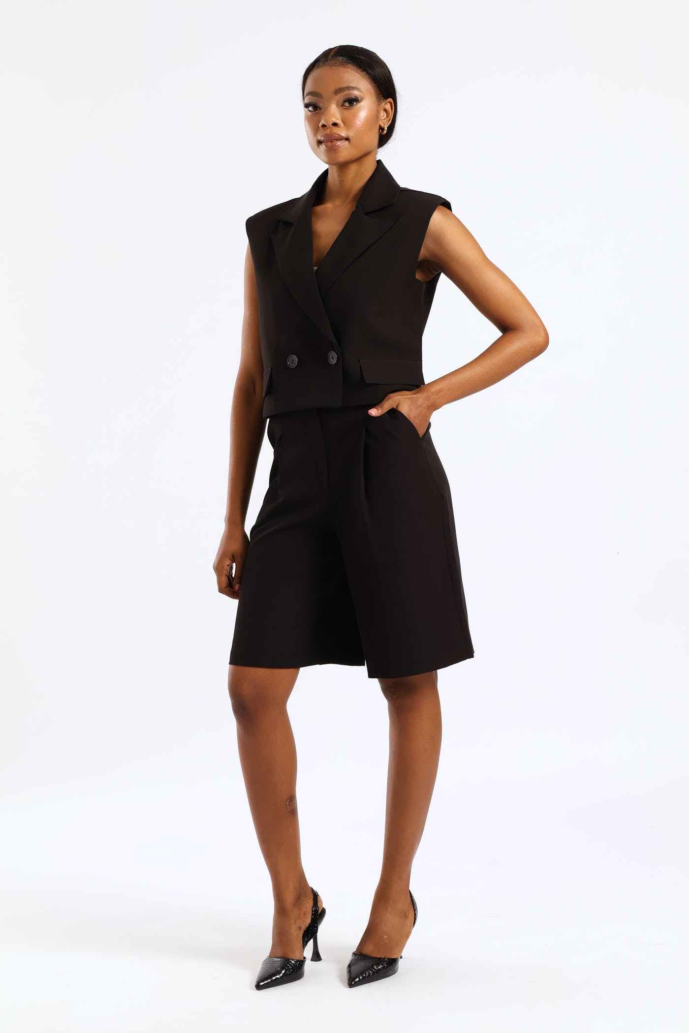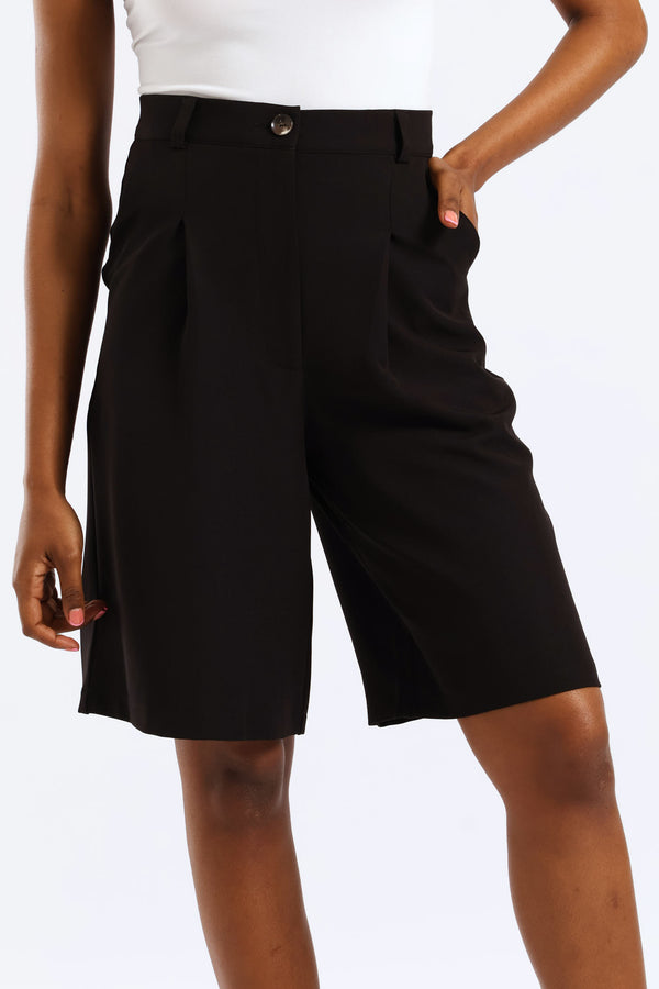 Step into summer fun with these playful black Bermuda shorts! Perfectly balancing comfort and style, they offer a relaxed fit that keeps you cool on sunny days. Ideal for casual outings or beach adventures, these shorts add a chic edge to any outfit while letting you move freely. Embrace effortless cool with a touch of boldness in classic black.