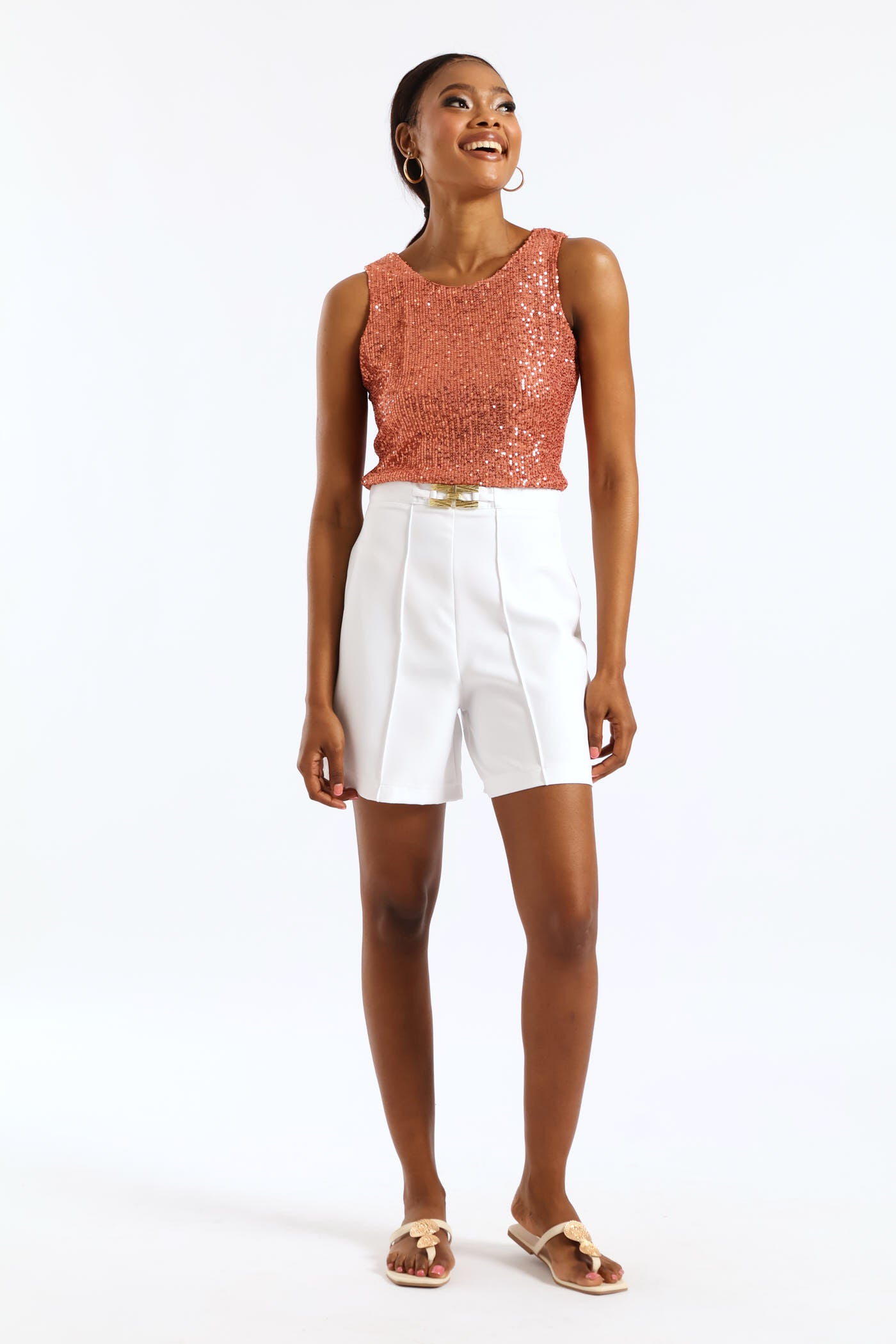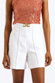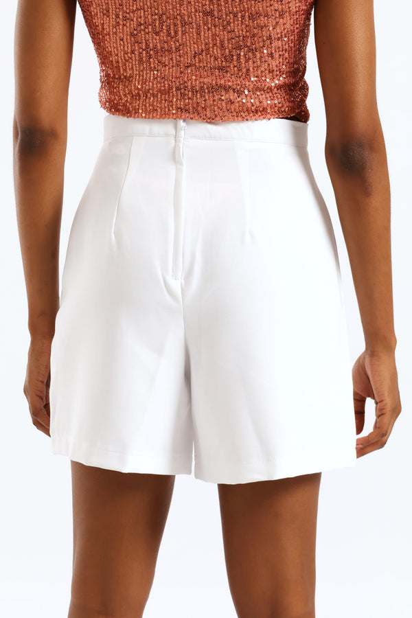 These Buckle Trim Pintuck Shorts in crisp white bring a fresh, fun twist to your summer wardrobe. The pintuck detailing adds a touch of charm, while the buckle trim keeps things stylishly unique. Perfect for sunny days and spontaneous adventures, they combine comfort and playfulness effortlessly.