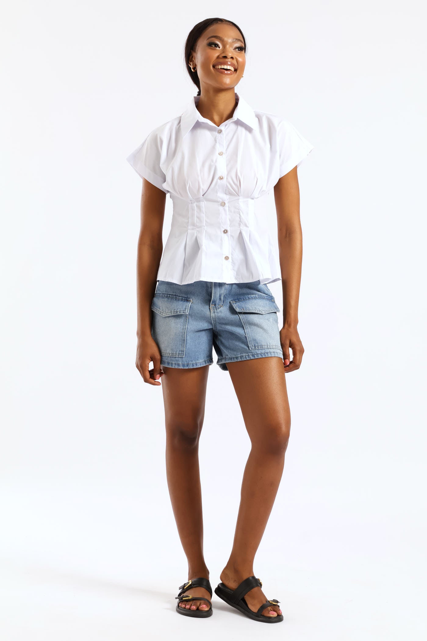 Bring casual cool to your warm-weather wardrobe with the Cargo Pocket Denim Shorts in Light Wash. These playful shorts feature roomy cargo pockets for all your essentials and a laid-back vibe perfect for adventures or chill days. Light-washed denim adds a fresh, sunny touch to your look—comfort and style, all in one fun package.