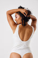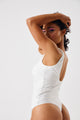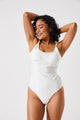 1 Piece Gold Trim Ribbed Swimsuit - Beige