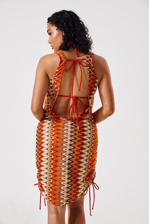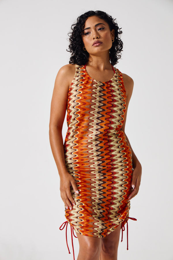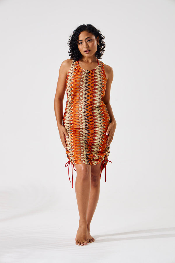 Turn heads effortlessly in the Ruched Swirl Mesh Coverup Dress in Rust. Its playful swirl design and ruched details create a flattering silhouette, while the lightweight mesh keeps you cool and comfortable. Perfect for beach days or casual outings, this dress adds a splash of vibrant style to your wardrobe.
