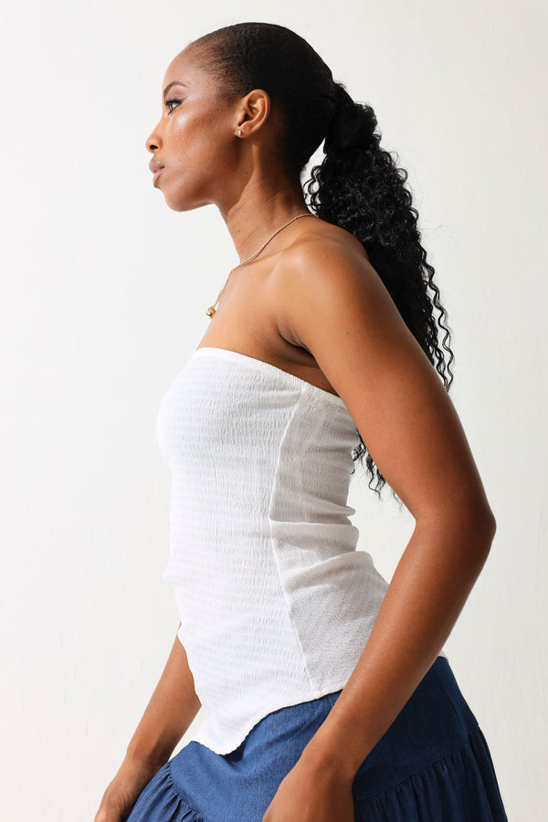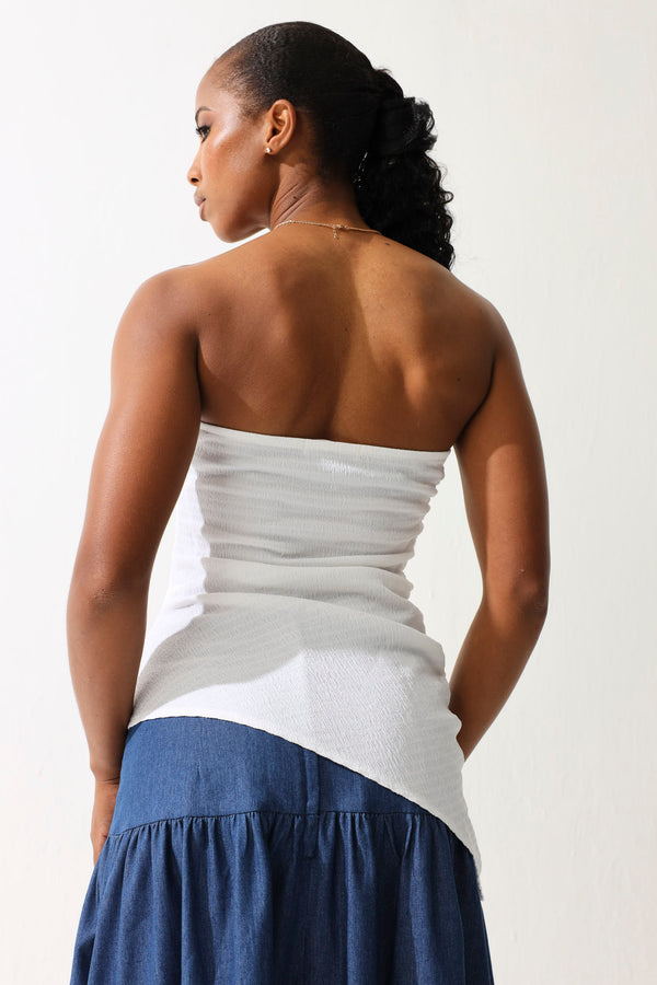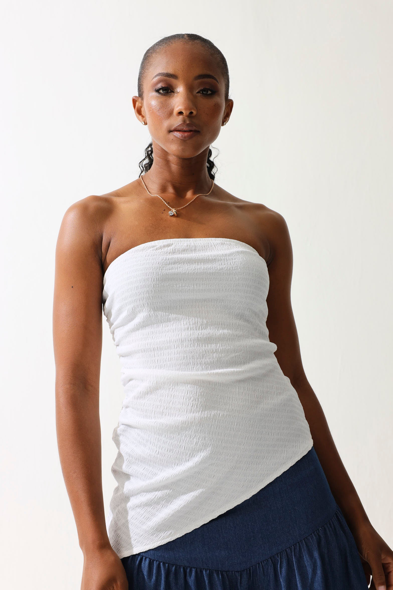 Asymmetrical Strapless Crinkle Knit Top - Cream