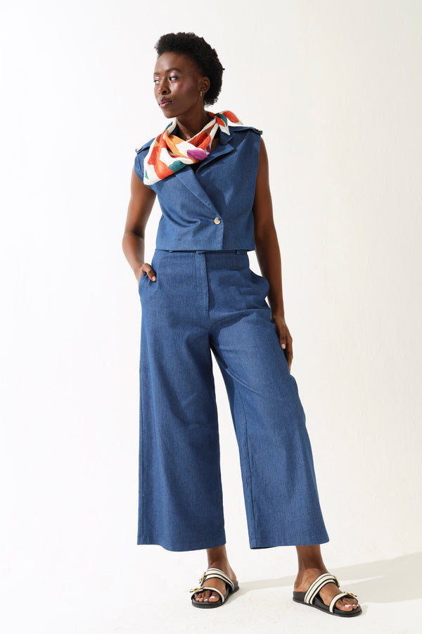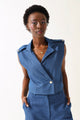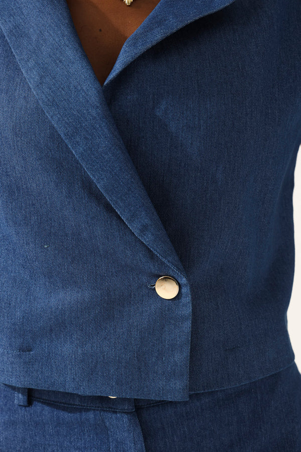 Elevate your everyday style with this clever chambray top that pulls off the blazer look without the stuffiness. Crafted in rich dark wash denim, it features structured shoulders and a polished silhouette that works equally well over a tee or dressed up for the office. The breathable fabric keeps you comfortable all day, while the timeless chambray finish pairs effortlessly with everything in your wardrobe. Smart, versatile, and undeniably chic—your new go-to piece just arrived.
