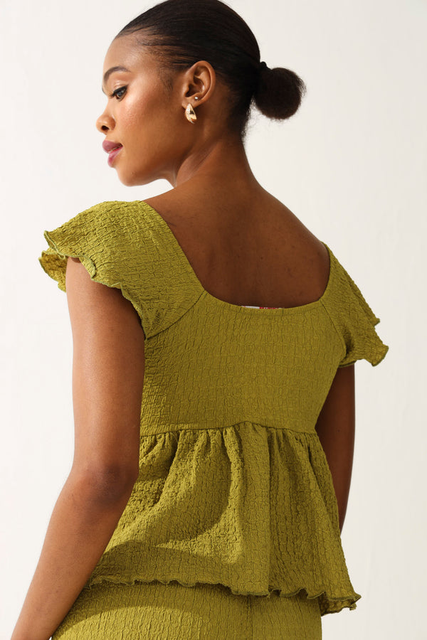 Crinkle Knit Peplum Top - Olive