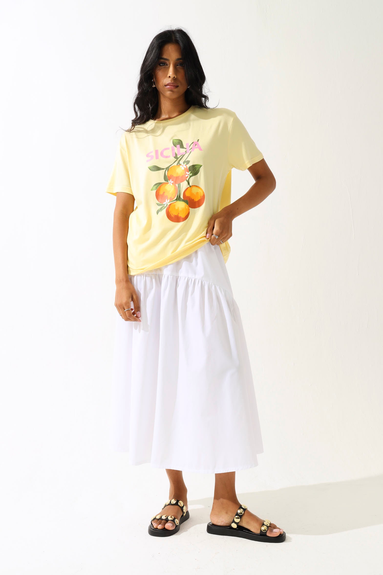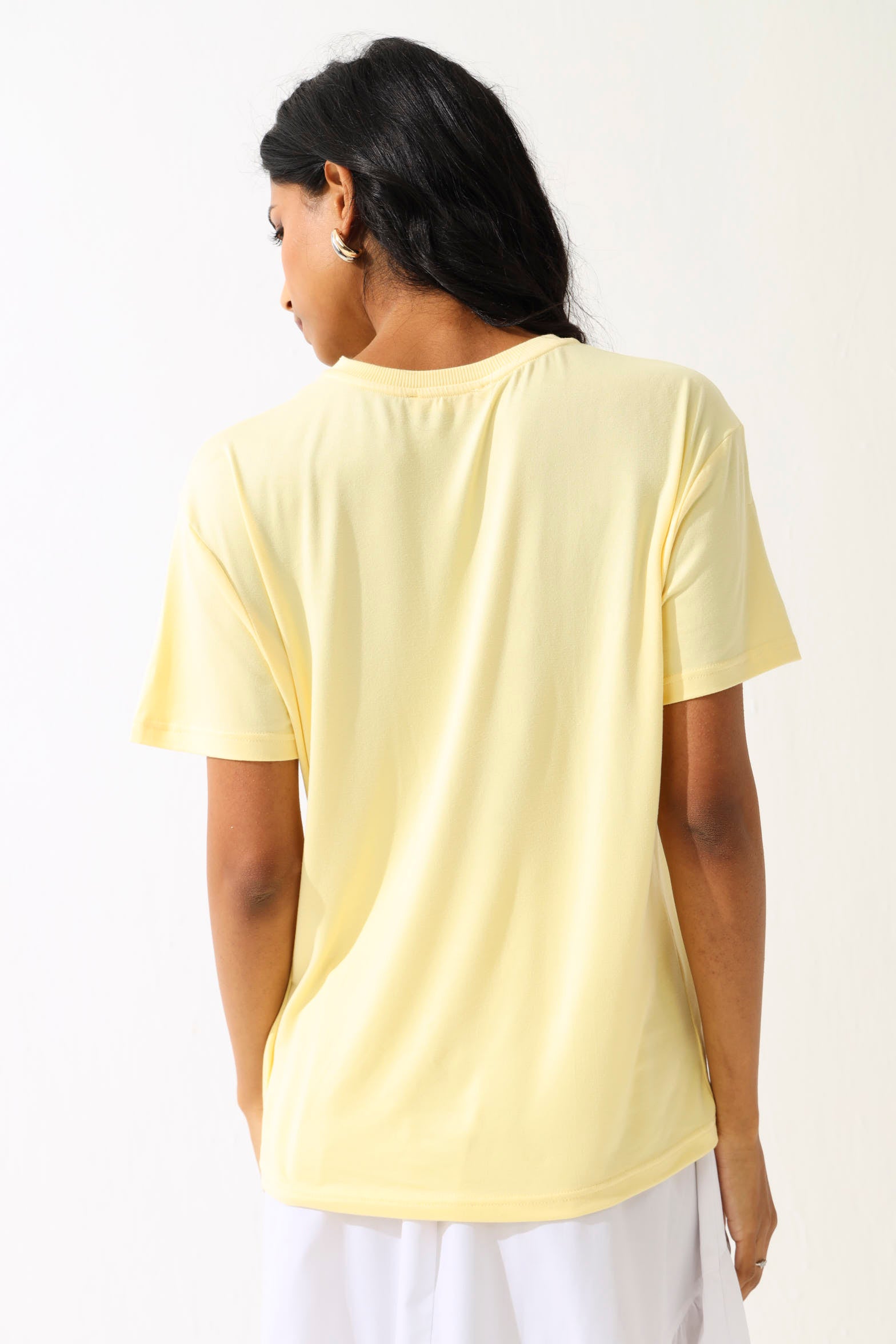 Brighten your wardrobe with this vibrant yellow screen tee that's ready to turn heads. The Sicilia Screen Tee brings bold graphic style and everyday comfort together in one cheerful package. Perfect for casual outings, weekend hangouts, or whenever you want to add a pop of colour to your look. Soft, wearable, and unapologetically fun—this tee is your new go-to piece for effortless style.