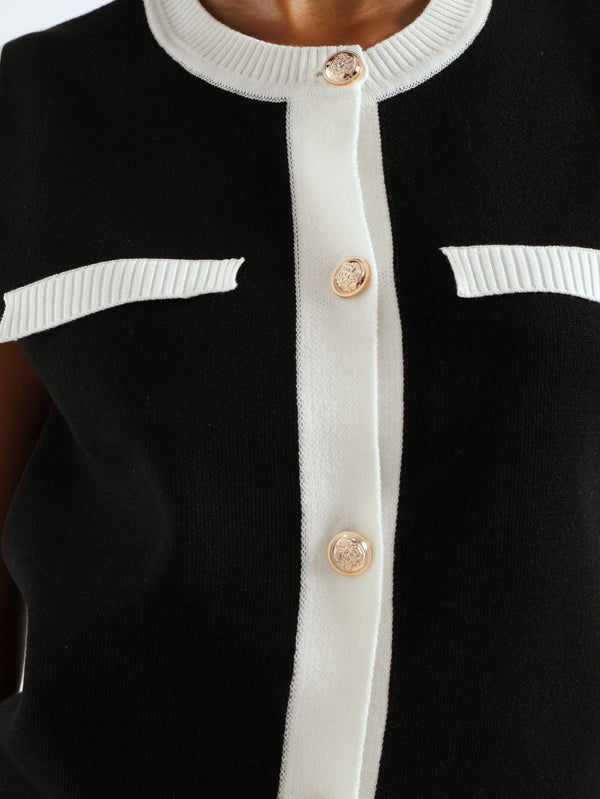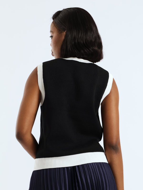 Sleeveless Contrast Knitwear Top - Black/White