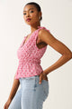 Sleeveless Ruched Waist Gingham Blouse - Pink
