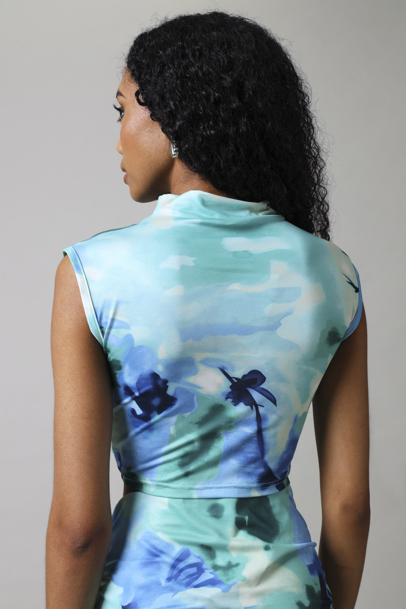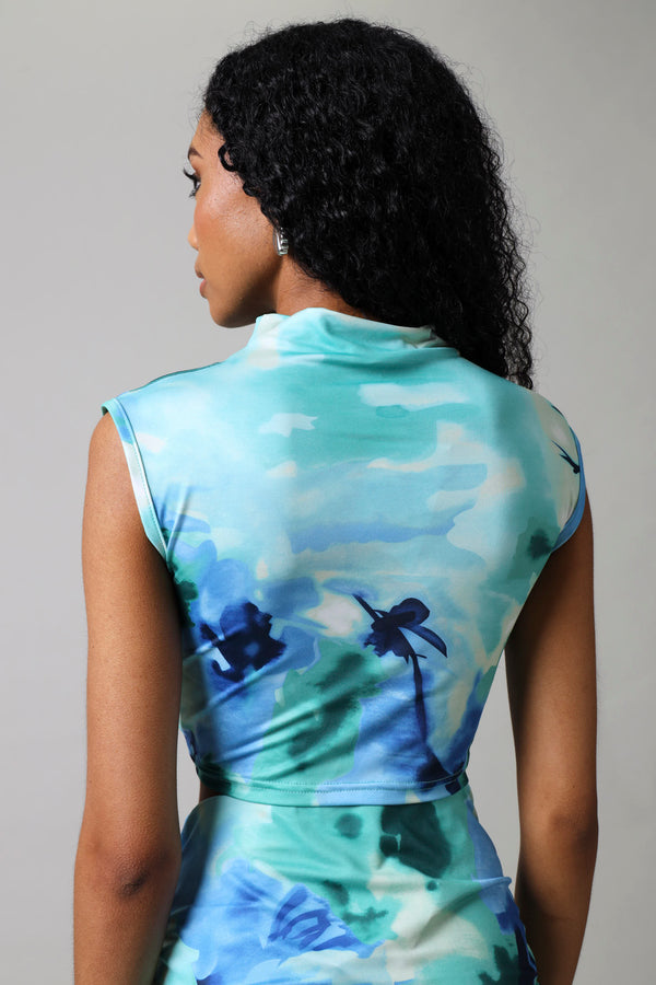 Sleevelss Wrap Crop Top - Blue