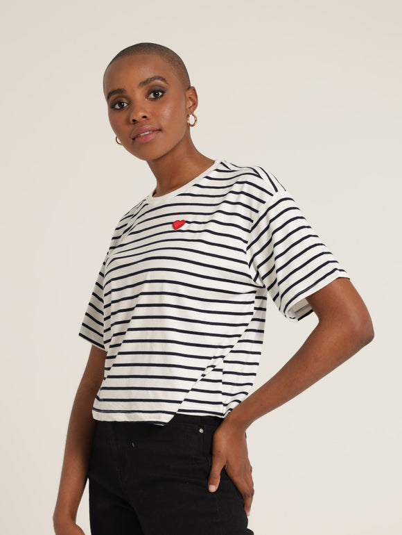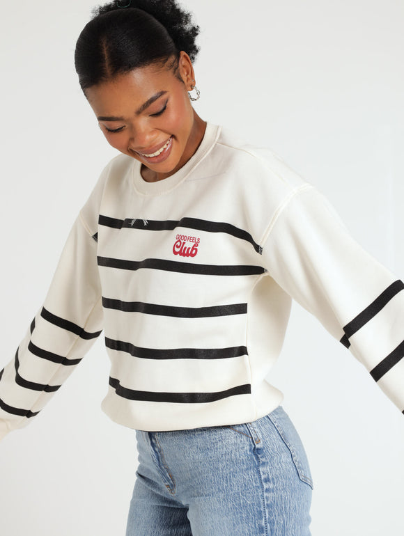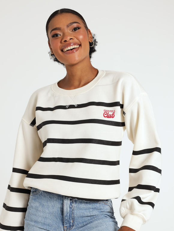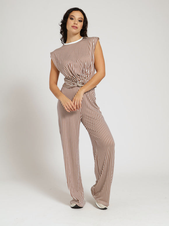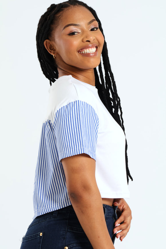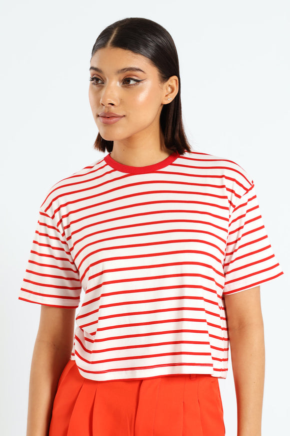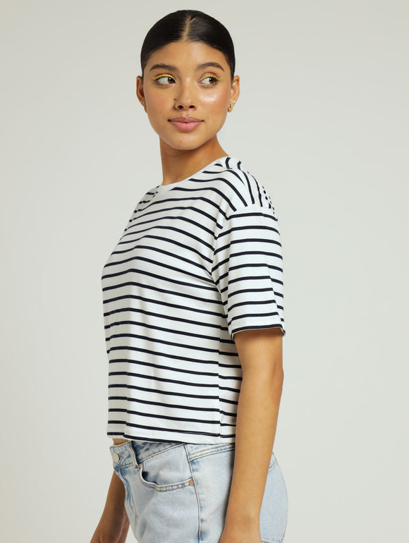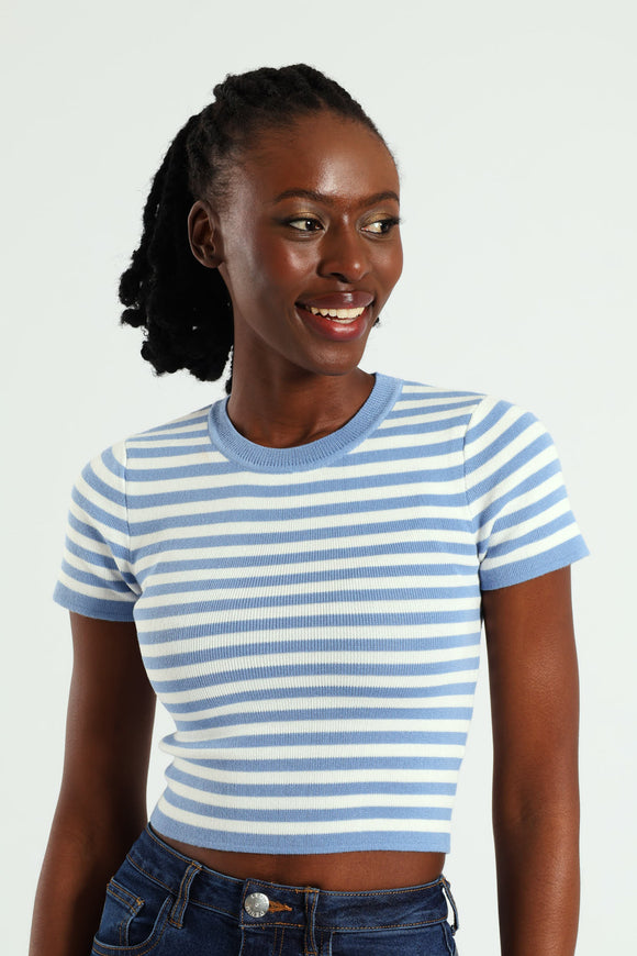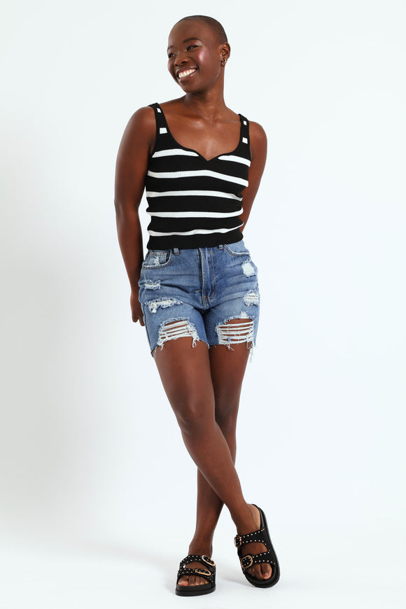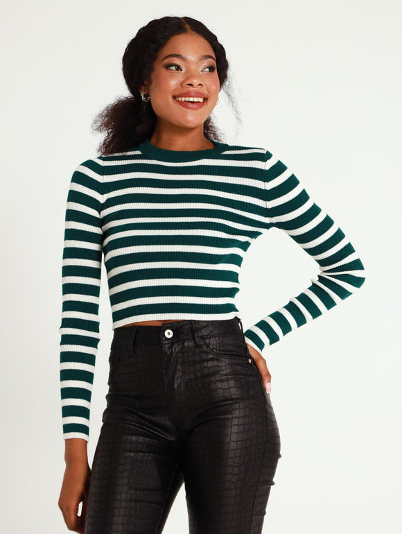 Stripe Johnny Collar Seamless Top - Black/Beige