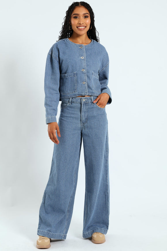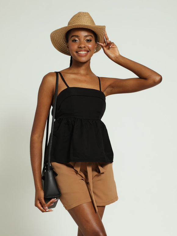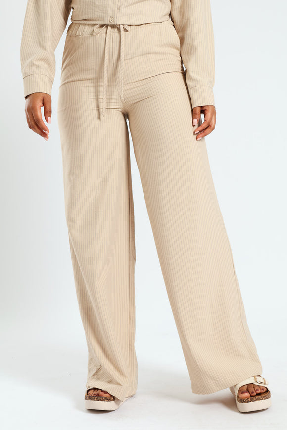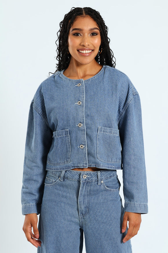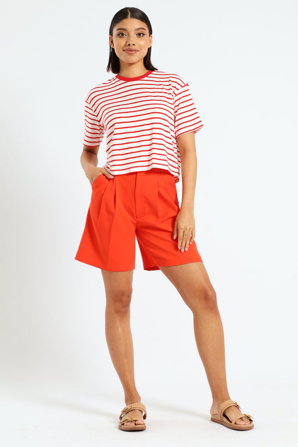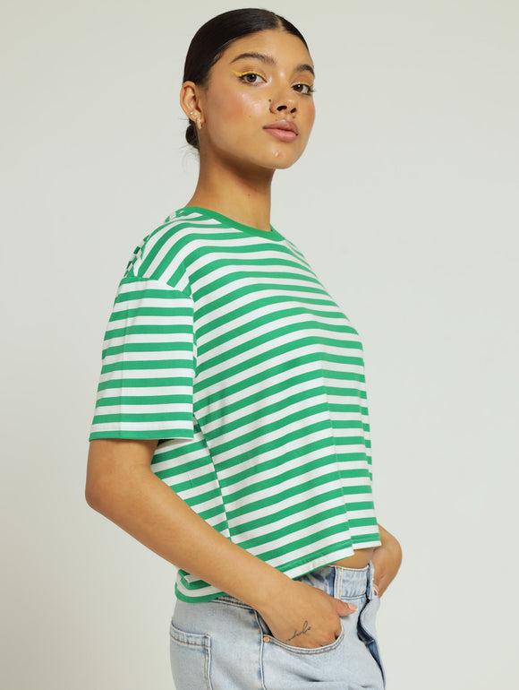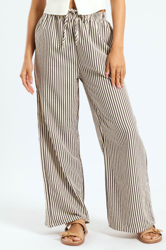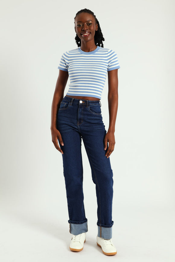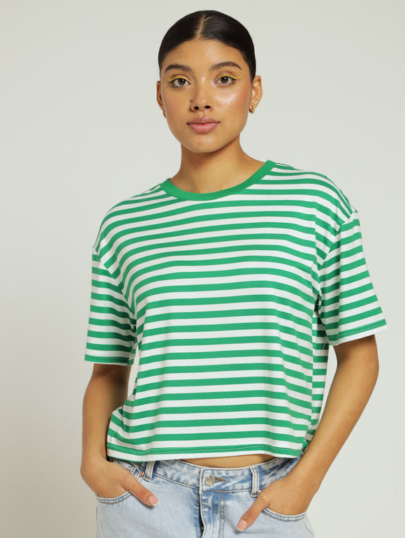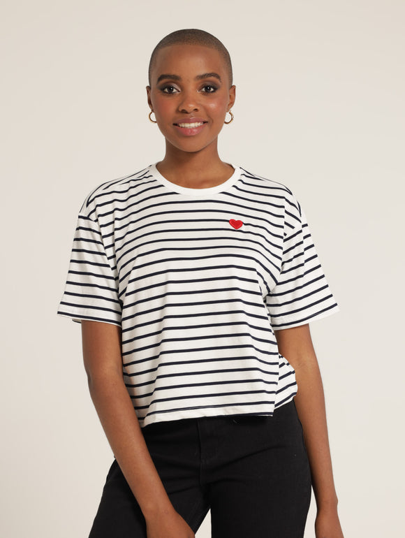 Stripe Johnny Collar Seamless Top - Black/Beige